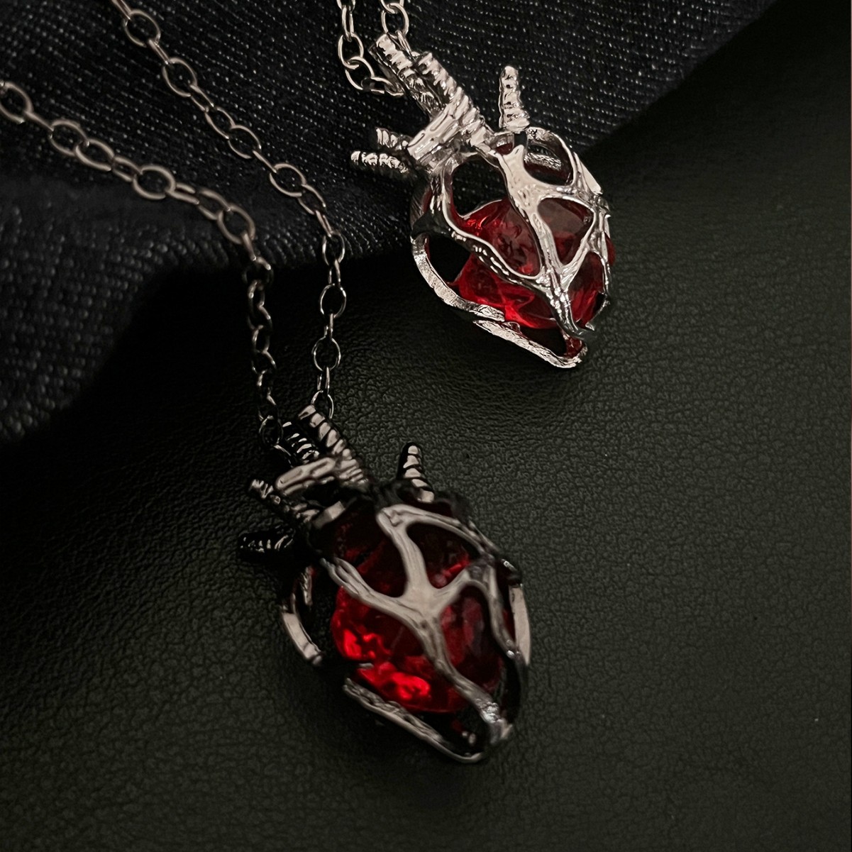 欧美新款热销哥特暗黑风 镂空心脏 红蓝玻璃之心吊坠项链情侣礼物