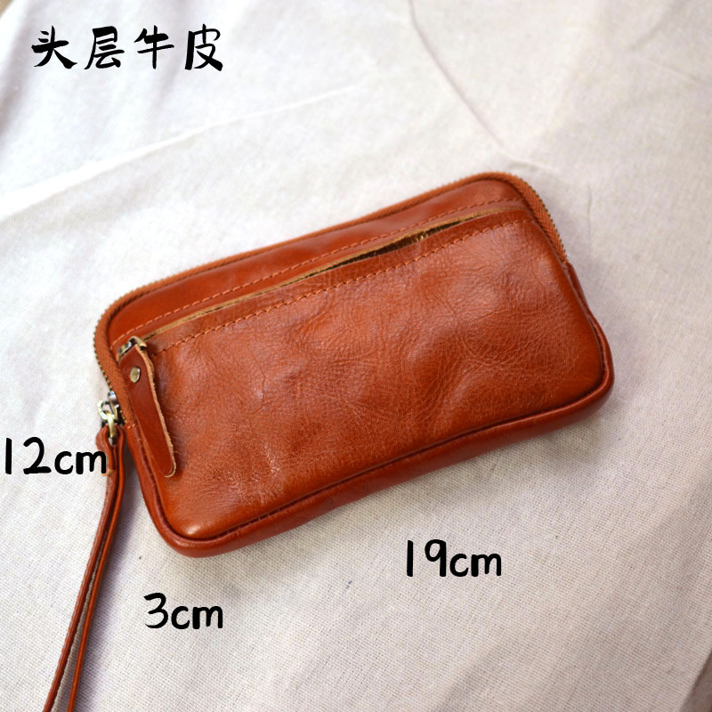 复古真皮女士钱包手拿包植鞣头层牛皮大容量手机包时尚便携收纳包