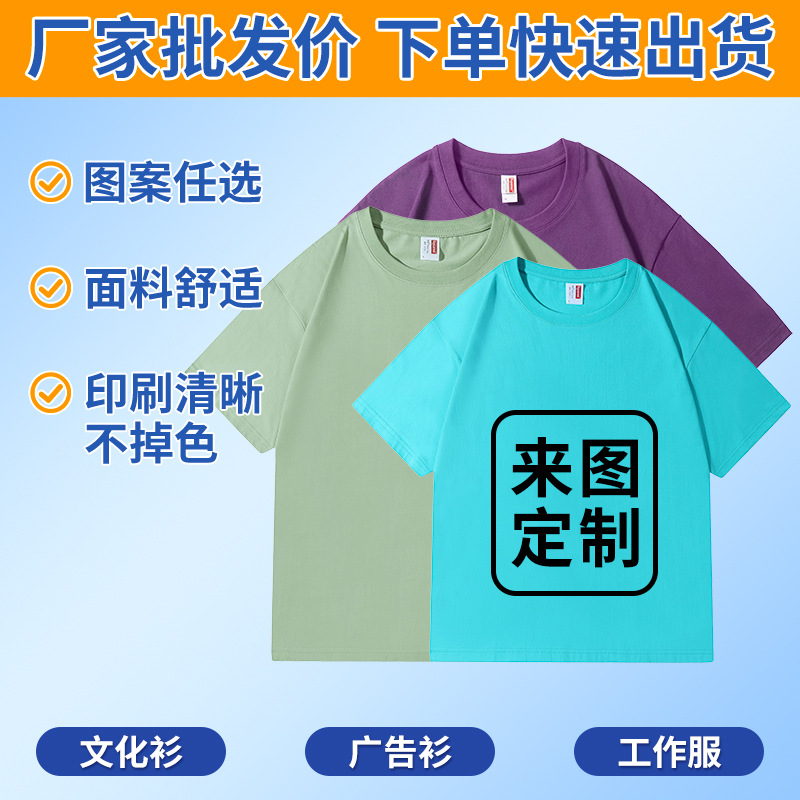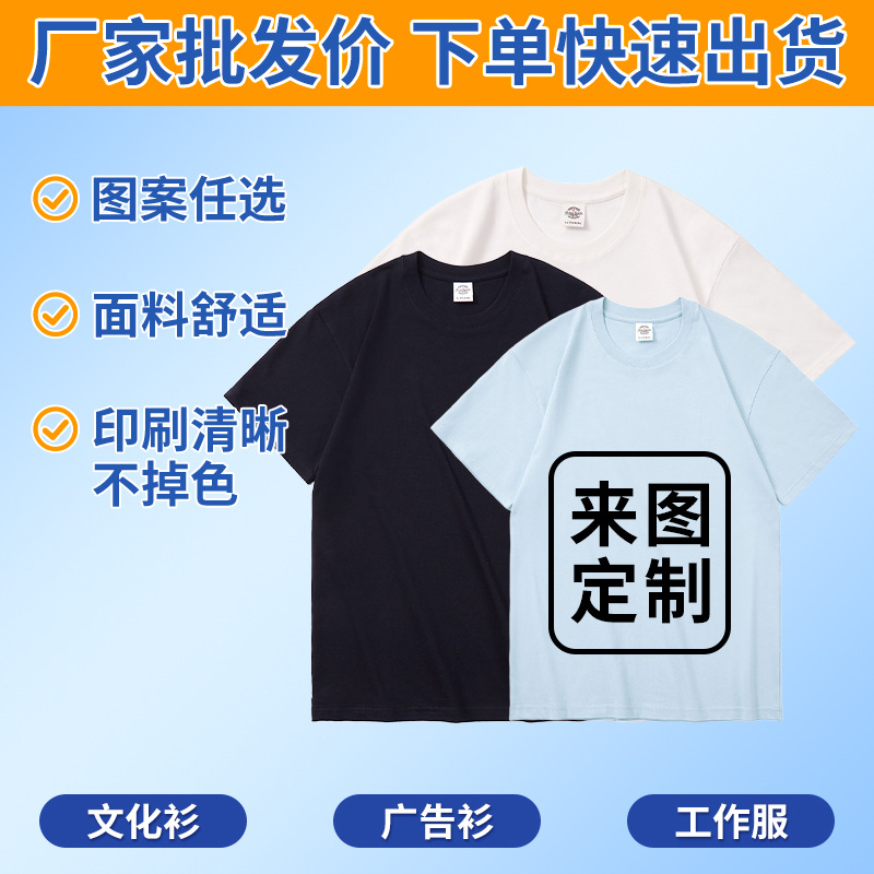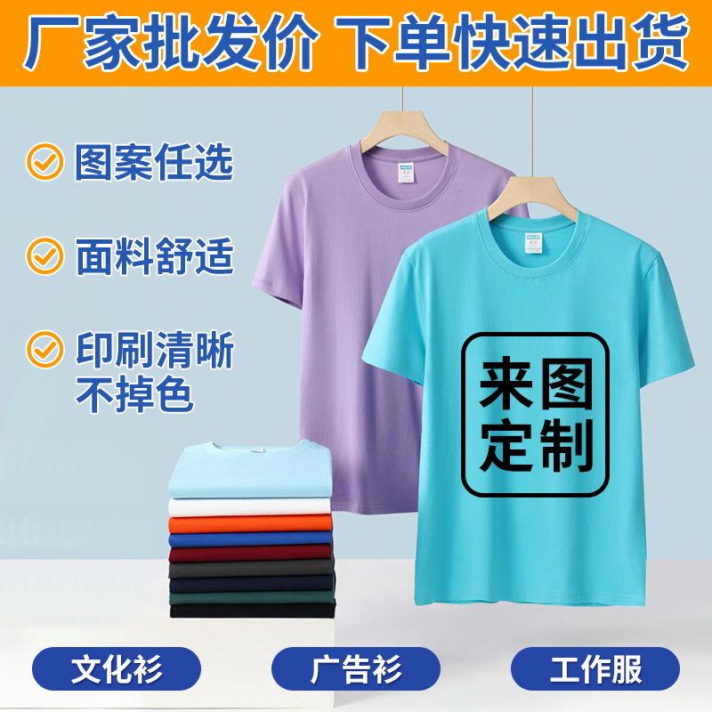 カスタマイズされた Tシャツ広告文化シャツラウンドネック半袖夏の綿の作業服服作業服プリントロゴ半袖