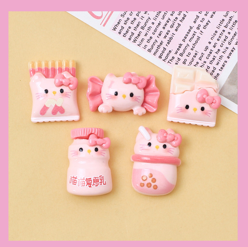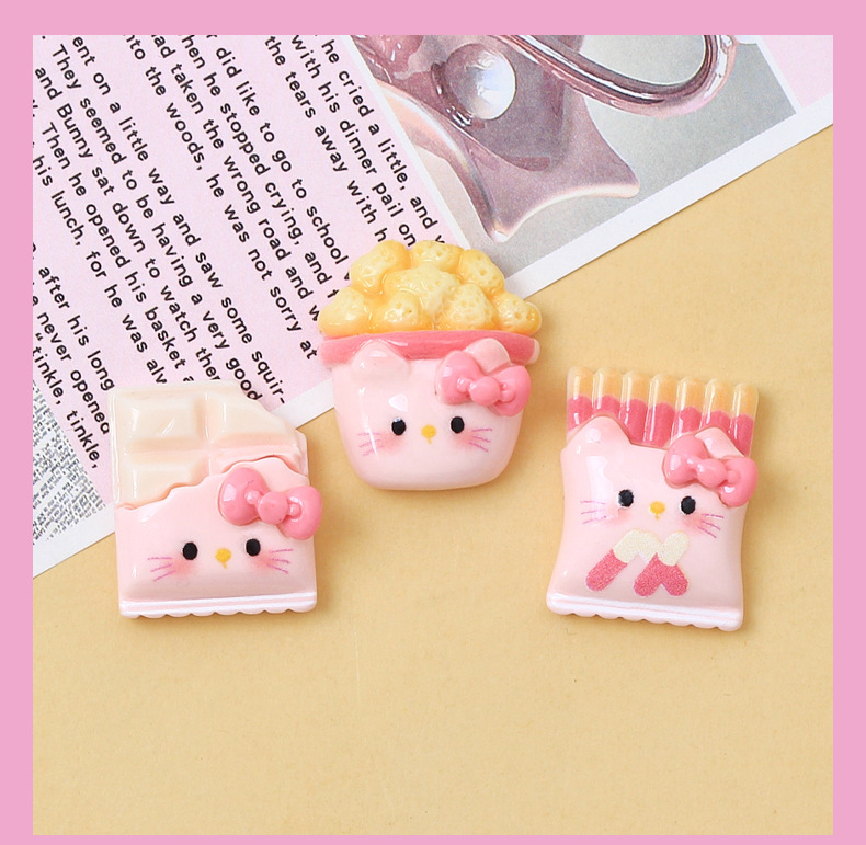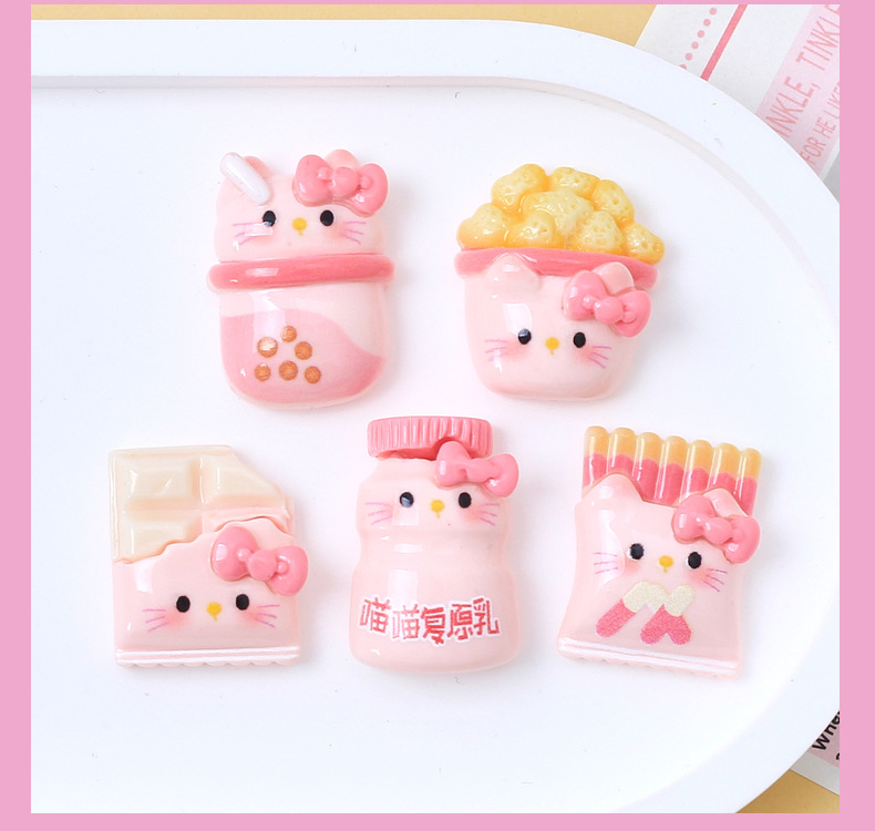 漫画のデザートの子猫の食べ物は手作りのdiyクリーム樹脂の部品のアイデアの髪飾りのヘアピンの樹脂の部品を遊びます。