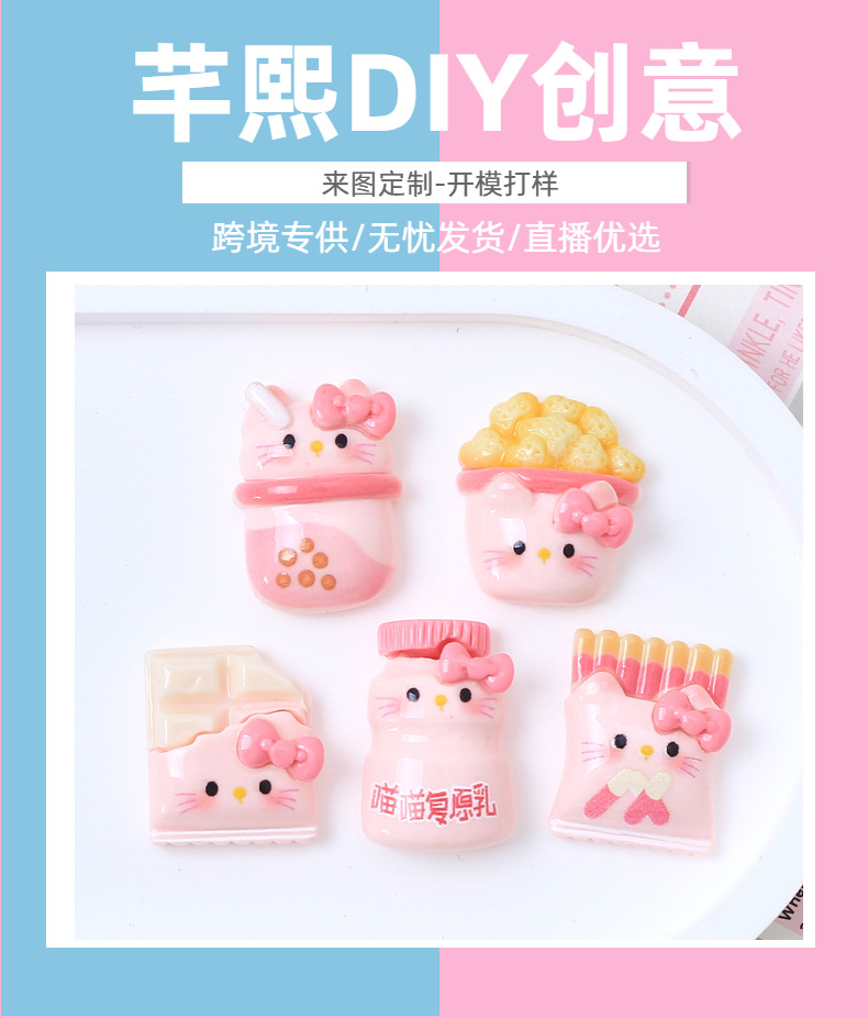 樹脂部品diy自作洞靴ボタンアクセサリークリームゴムヘアピン漫画蝶ネクタイ子猫甘い筒食游
