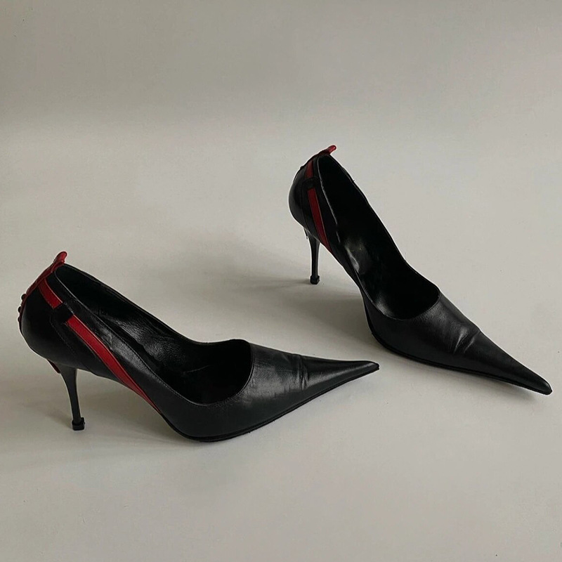 セクシーなエージェント風デザイン、蝶結び付き、ポインテッドトゥハイヒール、春向け細ヒール浅口バイクシューズ(税金別)
