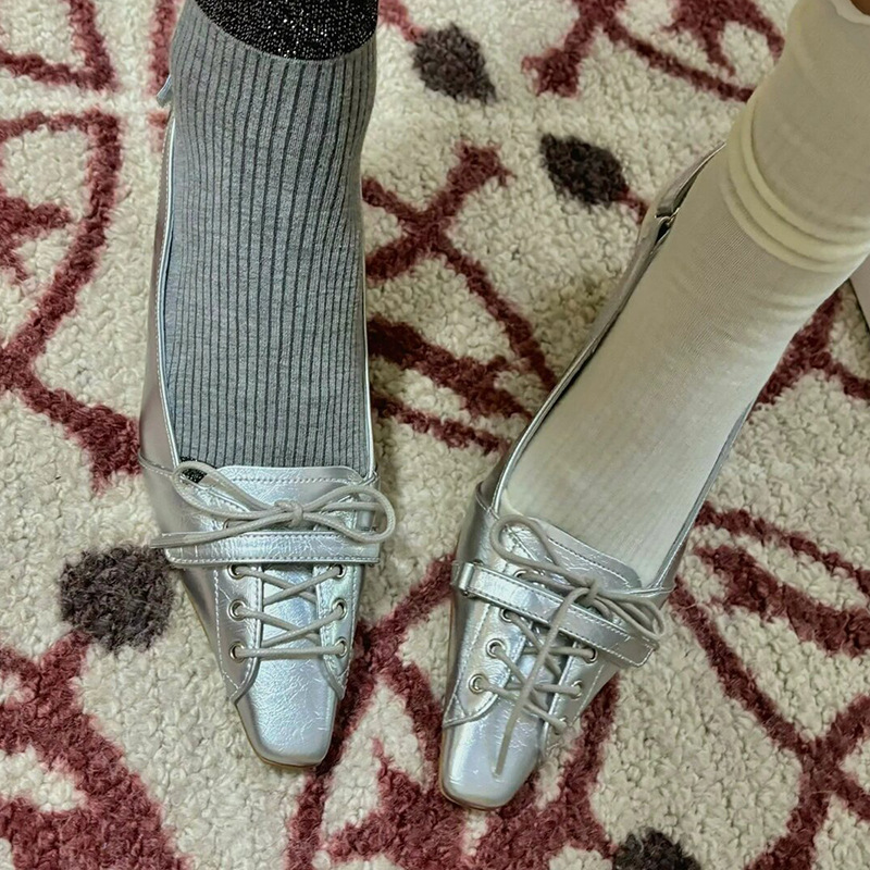 レトロなプリーツ加工のスクエアトゥ浅口ボウタイシューズ、女性用フレンチスタイルのチャンキーヒール、ワンストラップのメリージェーンシューズ(税抜)