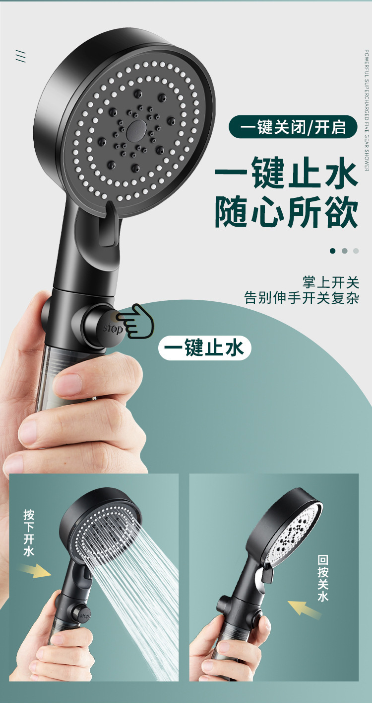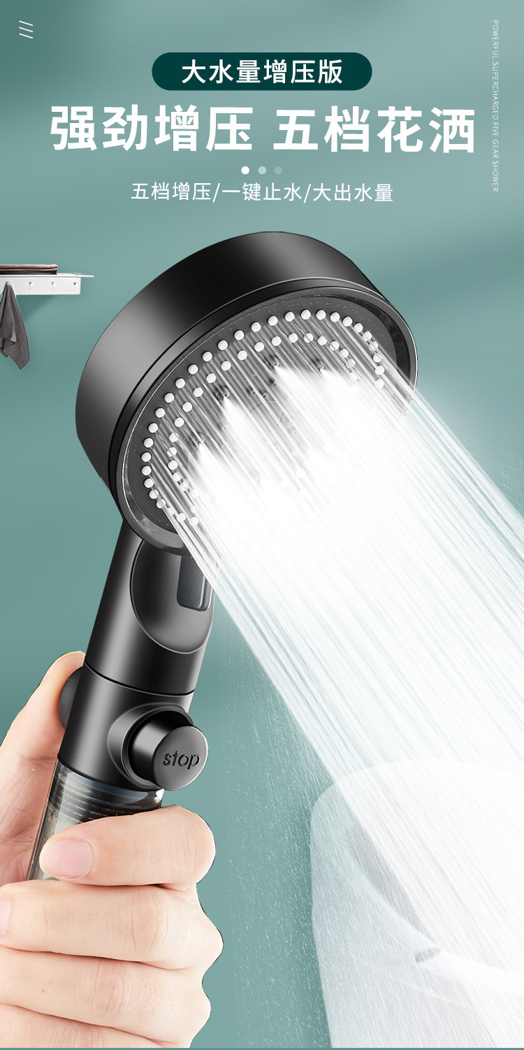 過給フィルタシャワーヘッドは5段階のシャワーセットを持っています。家庭用トイレの大出水通用インターフェースです。