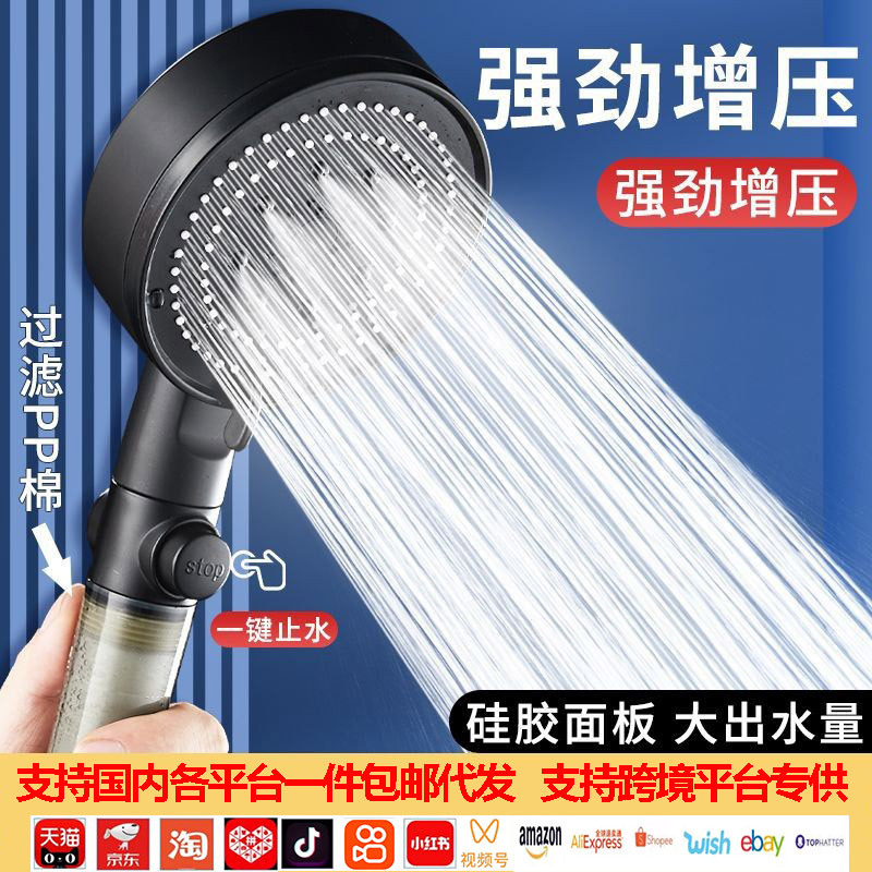 クロスボーダーブースターシャワー 3速シャワーヘッドフィルター ハンドヘルドフラワーシャワー フラワーワインプラスホースセット バスシャワーヘッド