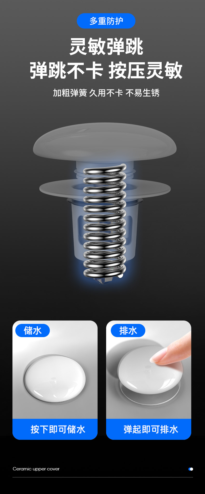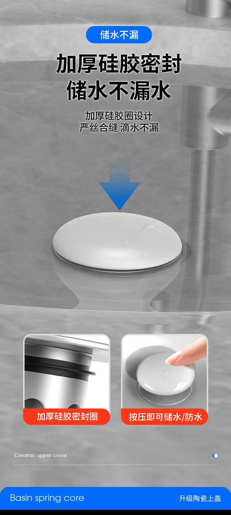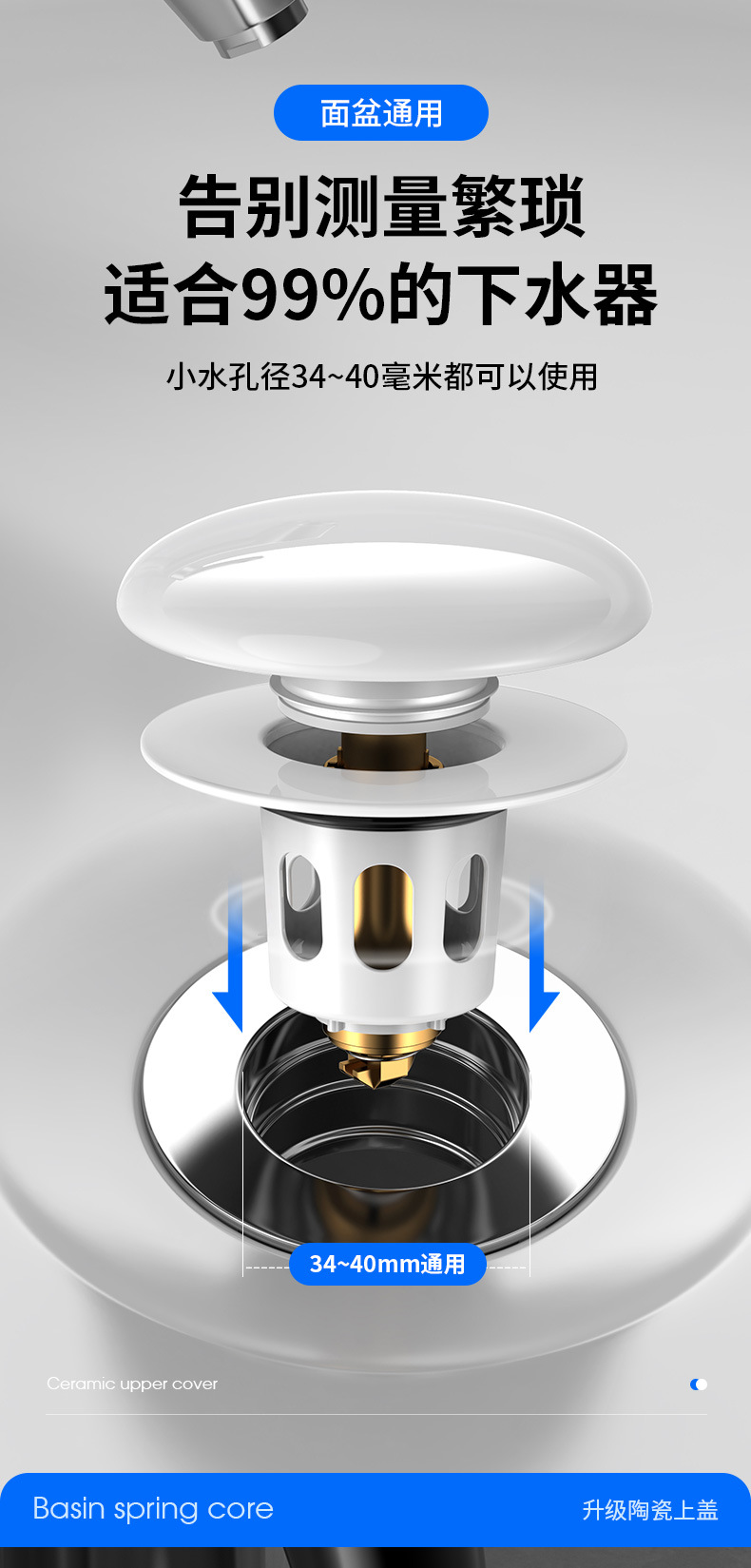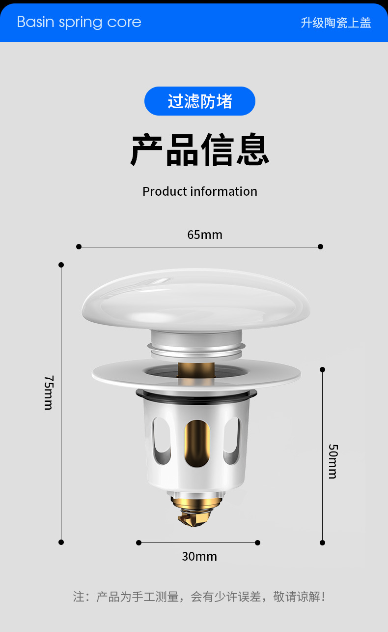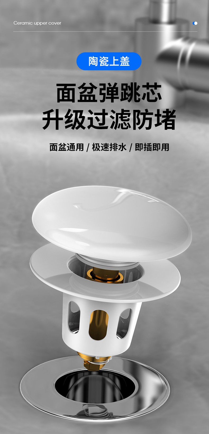 洗脸盆漏水塞陶瓷洗手盆按压式弹跳塞通用下水器配件洗脸池地漏塞