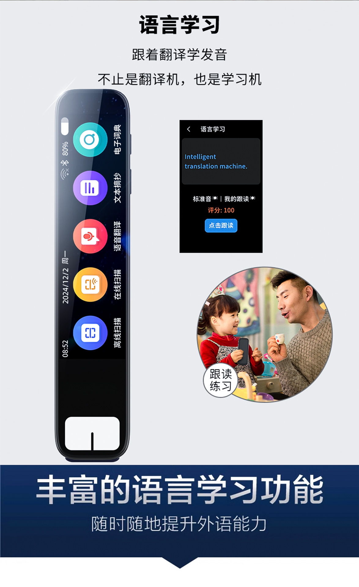 定制外贸AI扫描翻译机出国点读笔多国语言离线小语种学习俄语粤语