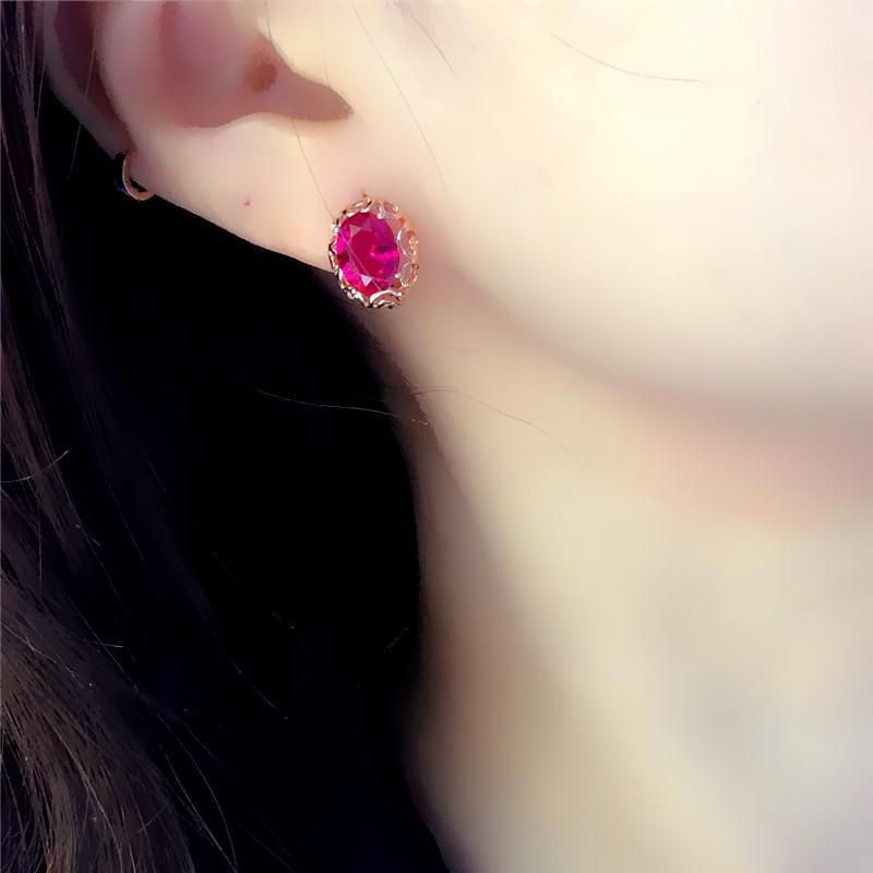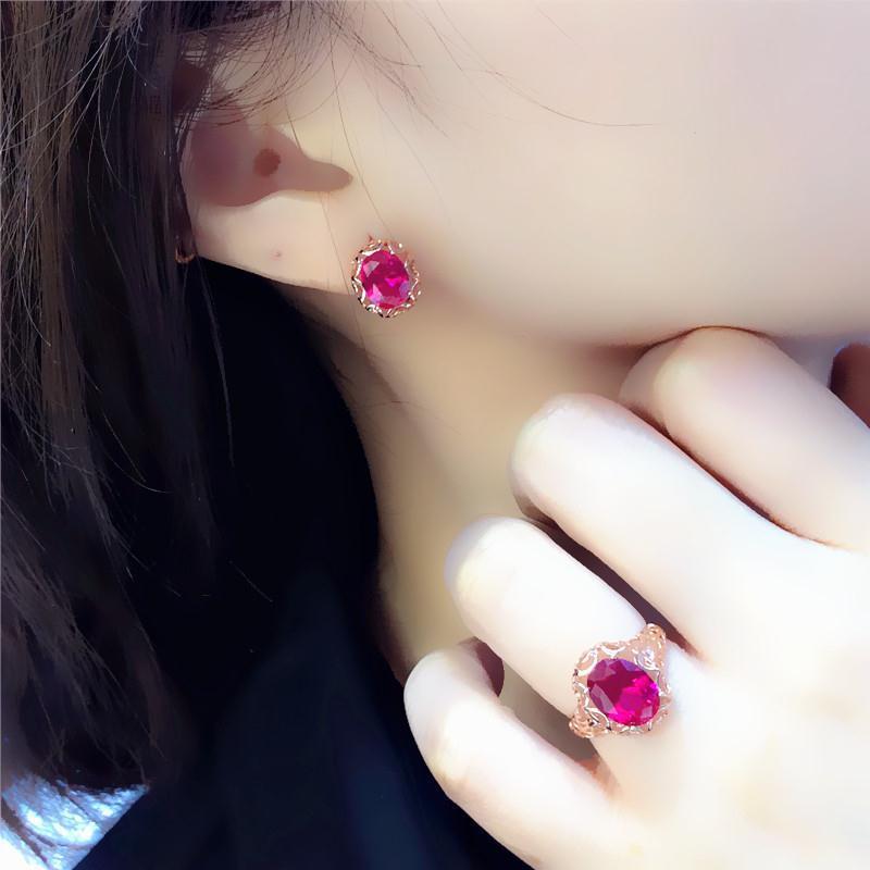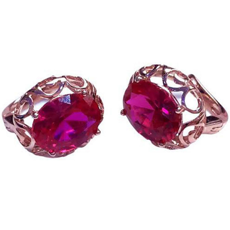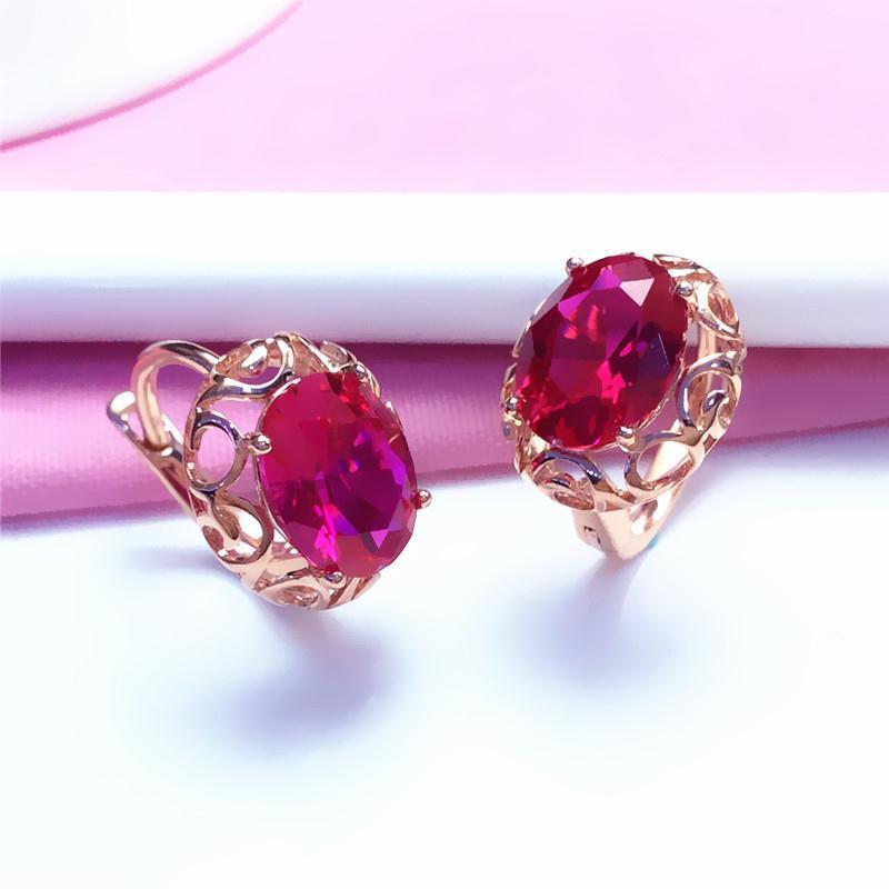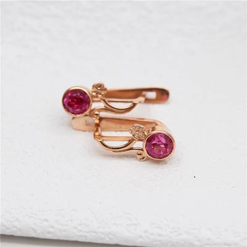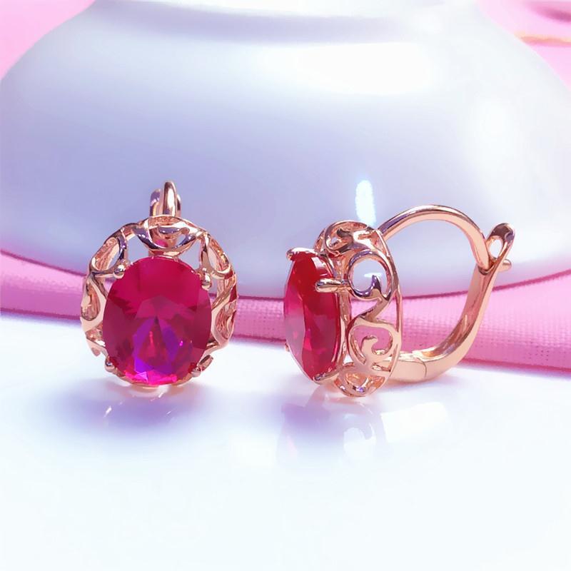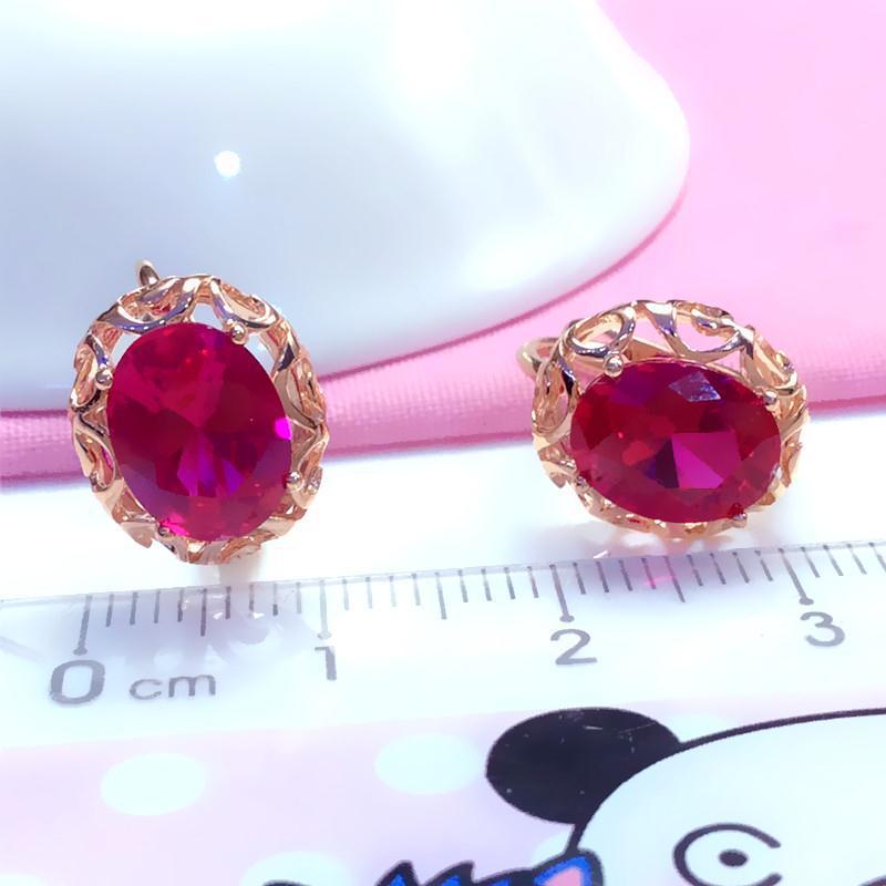 俄罗斯585紫金彩金镀玫瑰金镶嵌红石耳环时尚豪华彩金耳饰