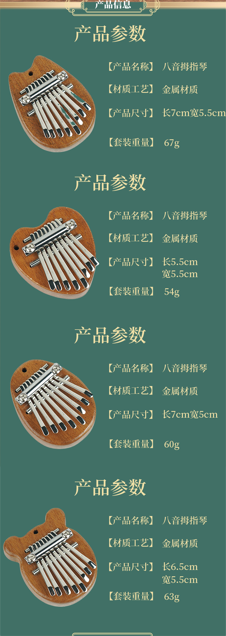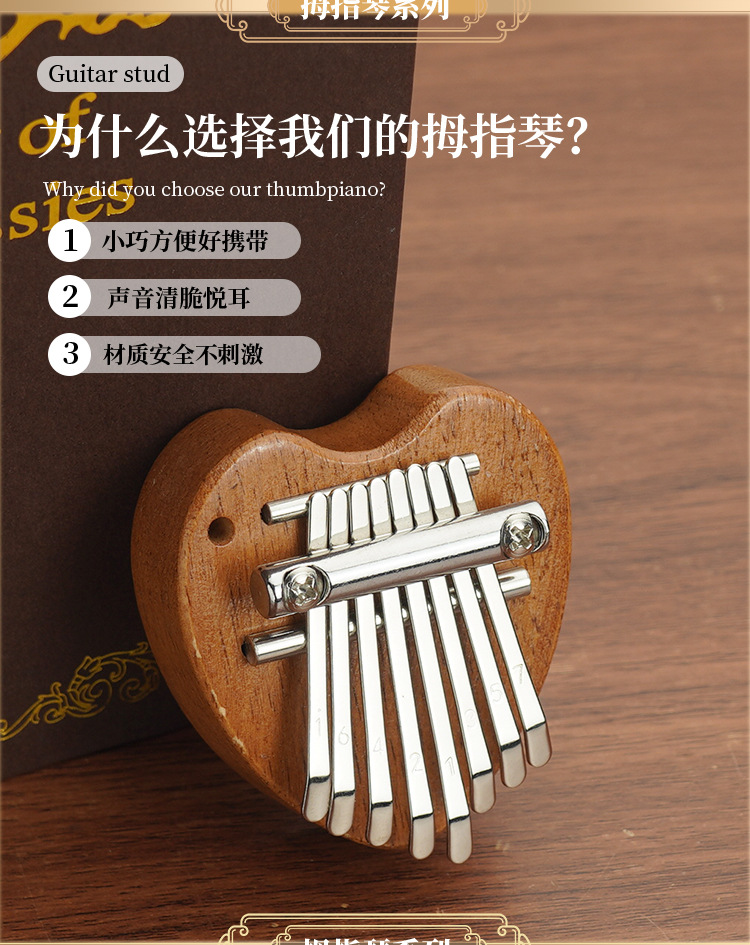 批发乐器8音迷你拇指琴手指琴卡林巴实木水晶五指琴便携儿童乐器