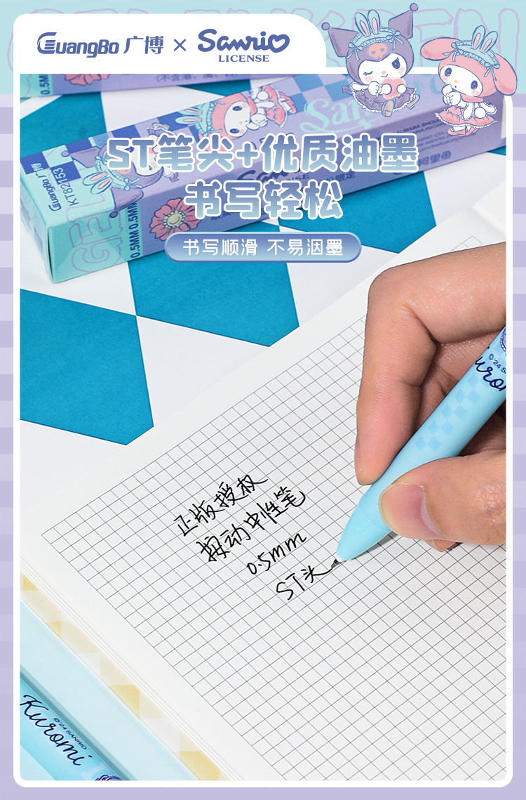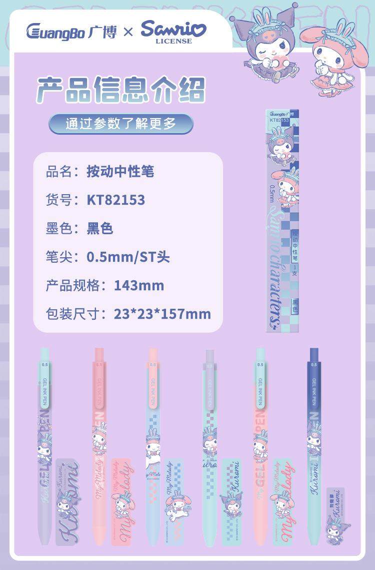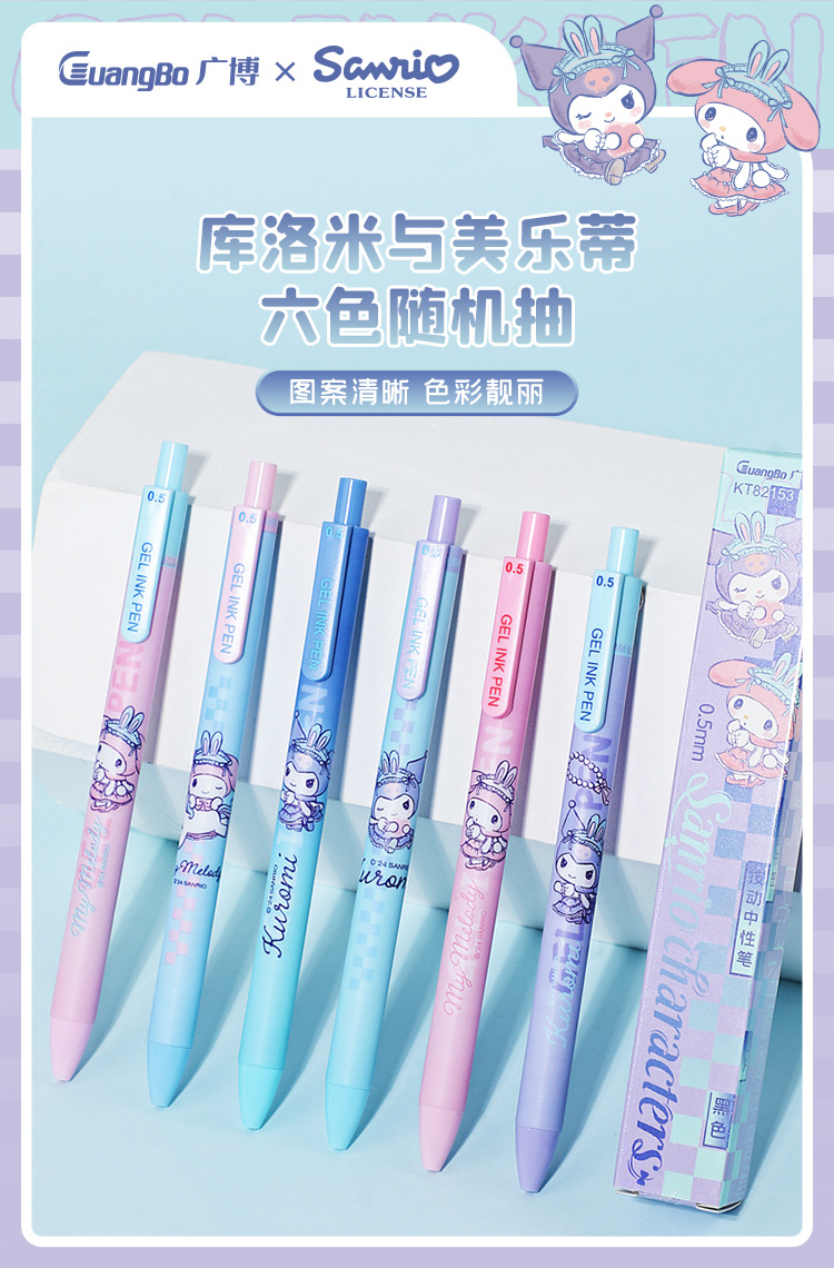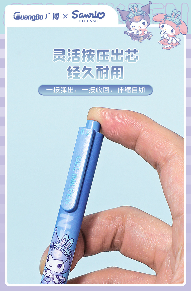 广博文具 正版三丽鸥按动中性笔盲盒笔学生高颜值黑色0.5mm写字笔