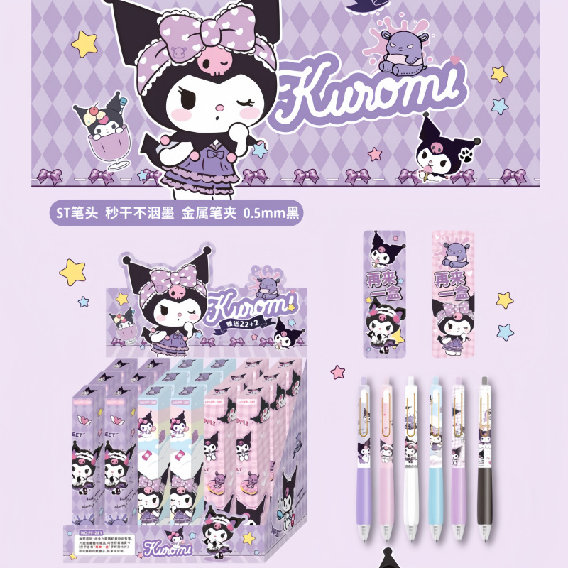 広博三丽鴎盲箱ペン漫画かわいいクロミ美楽ティは中性ペンの高颜値サインペン黒を押します。
