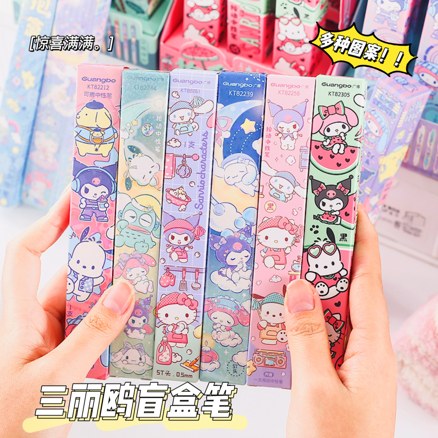 网红热卖7078三丽鸥盲盒中性笔卡通可爱书写顺滑流畅签字笔ST黑色