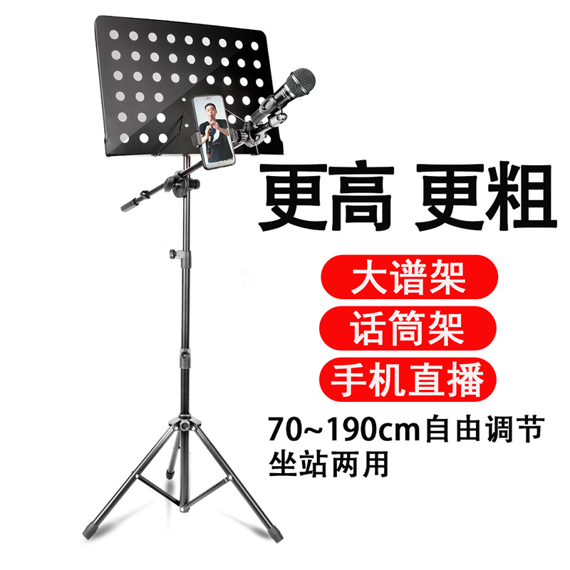 多機能譜面台昇降携帯電話ライブブロードキャストマイクスタンド楽譜一体型ポータブル折りたたみ楽譜面台