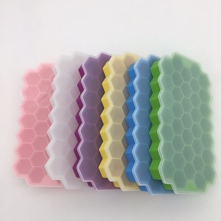 37格蜂窝硅胶冰格 冰块盒制冰块模具冻冰块 硅胶带盖制冰盒冰格
