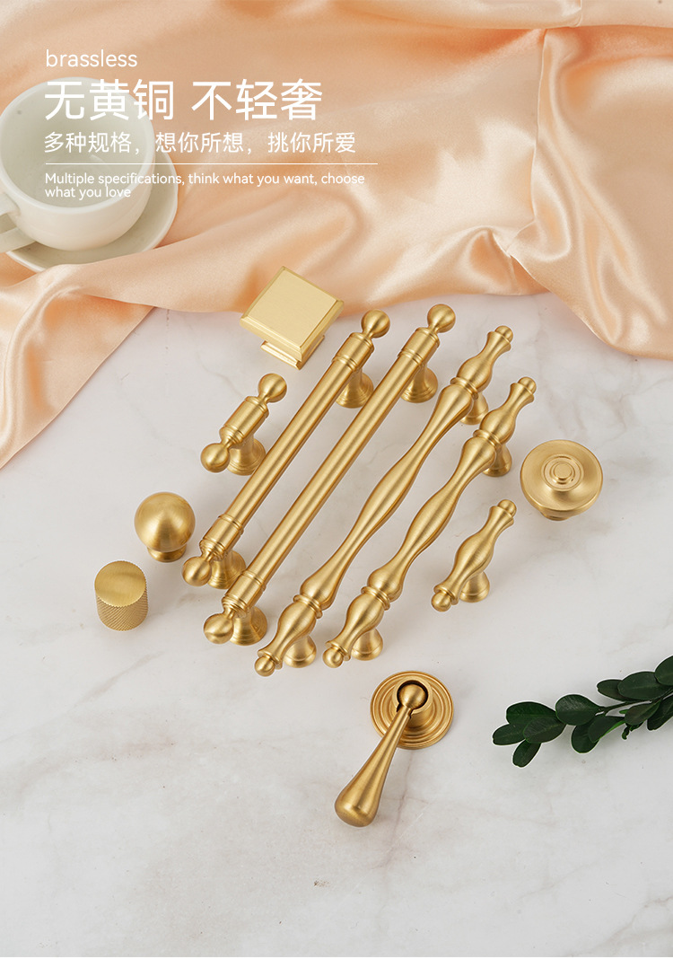 Longlin ハードウェアライト高級ワードローブドア真鍮ハンドルゴールドキャビネット靴キャビネット引き出し純銅ロングハンドルメッシュデザイン
