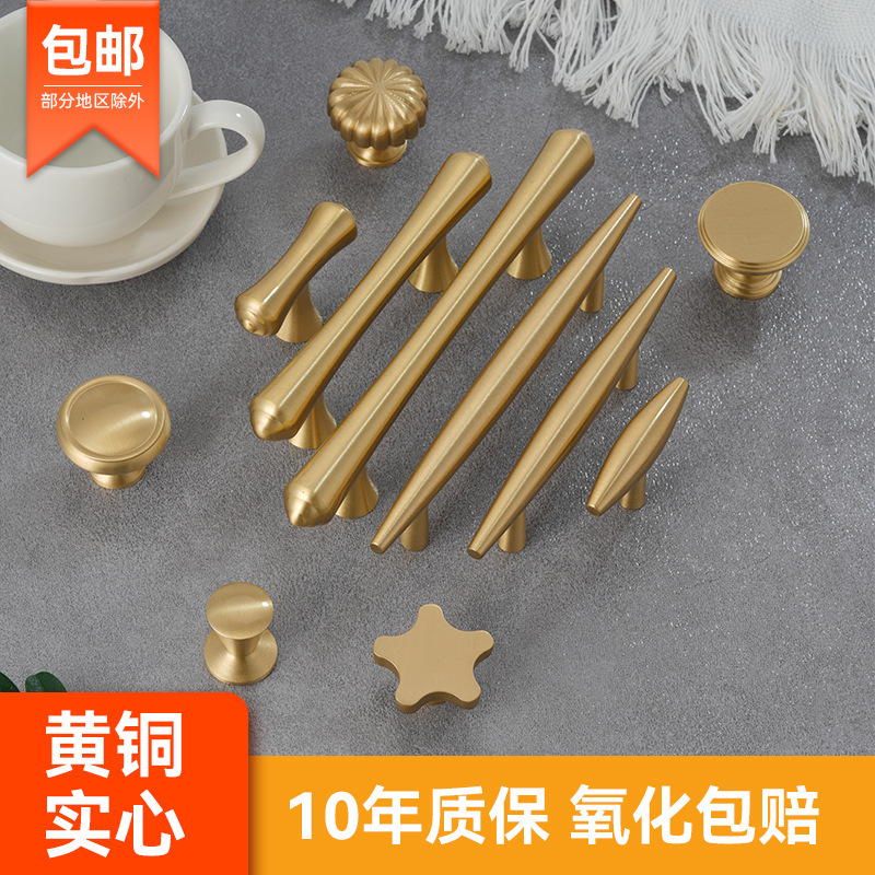 龍林金物純真鍮服キッチンキャビネットドア古銅色単孔取っ手復古シンプル純銅引き出し取っ手卸売り
