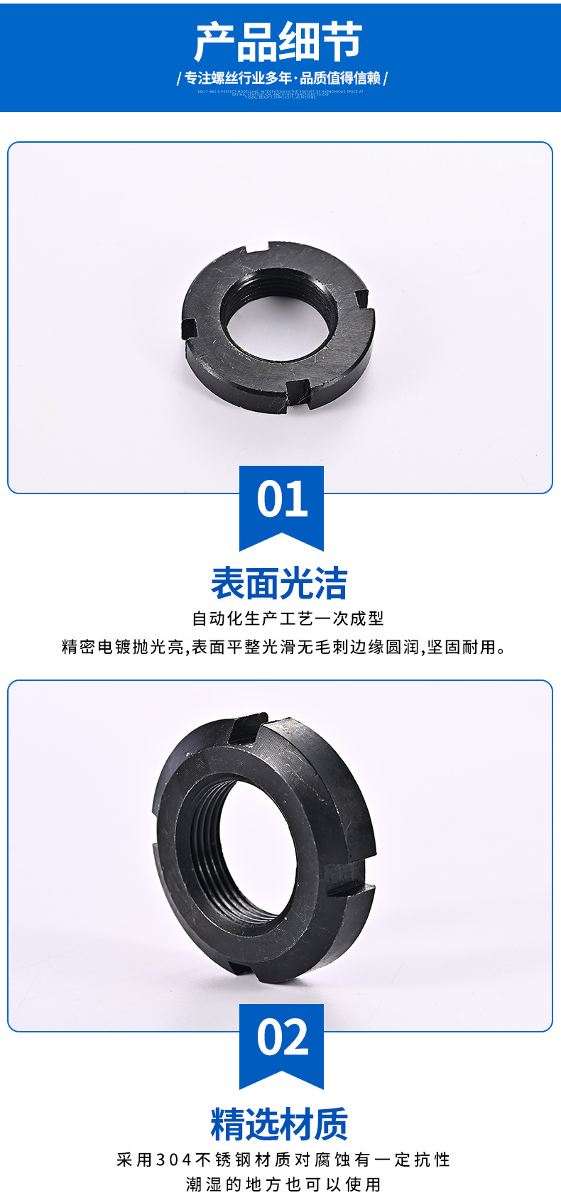 メーカー供給ロック丸ナットGB812軸端中炭素四槽元ナットブッシュ園ナット酸化黒ずみ