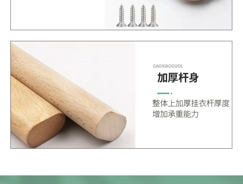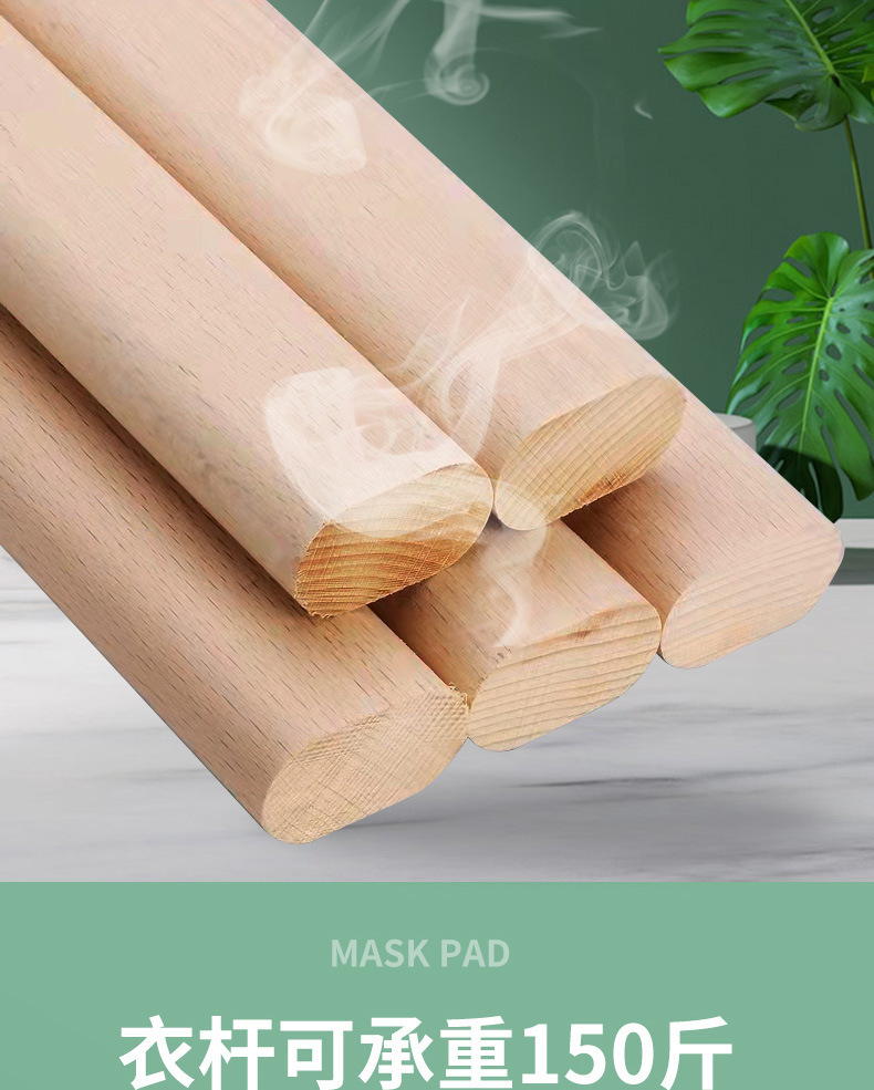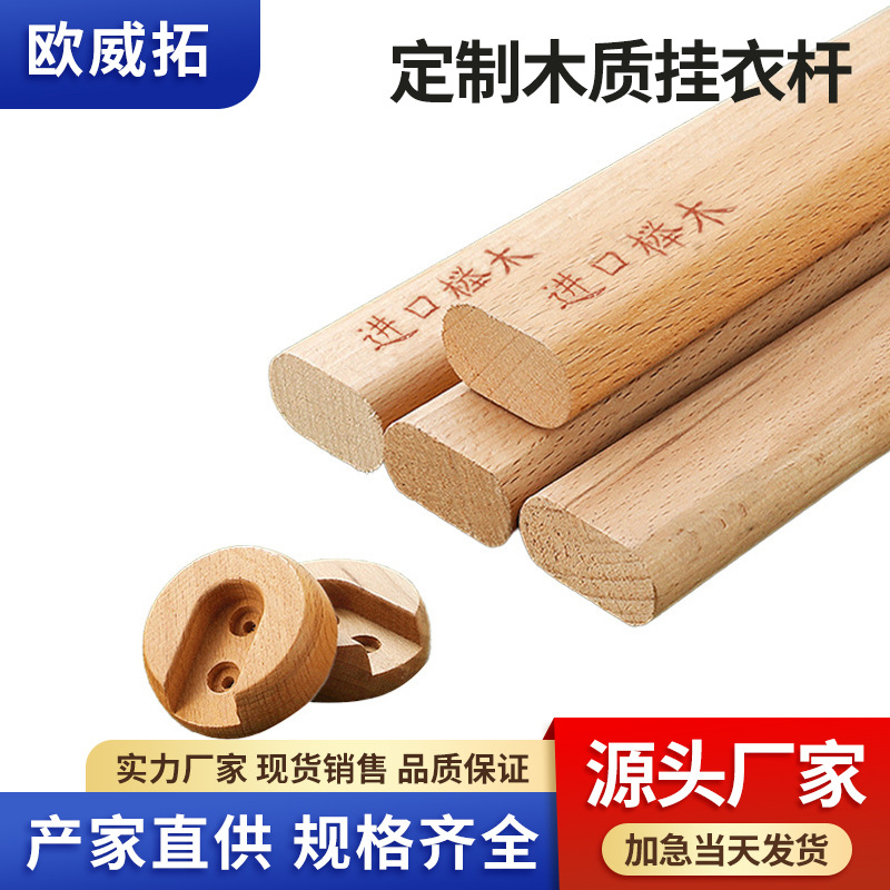 现代简约圆形榉木挂衣杆衣柜木质晾衣杆单杆实木杆圆棒挂衣杆扁条