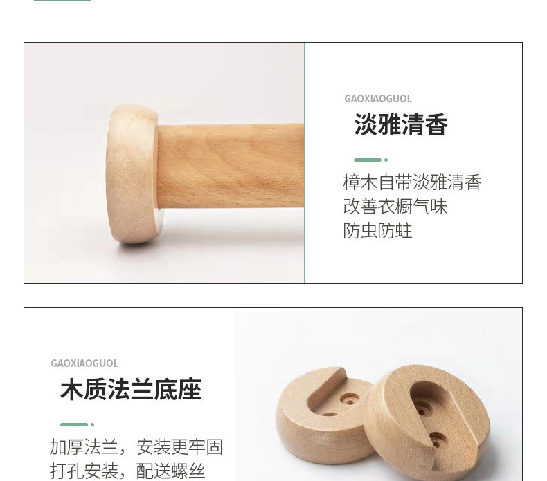 衣柜榉木挂衣杆实木衣橱内衣服挂杆子加厚木头法兰晾衣杆衣通横杆