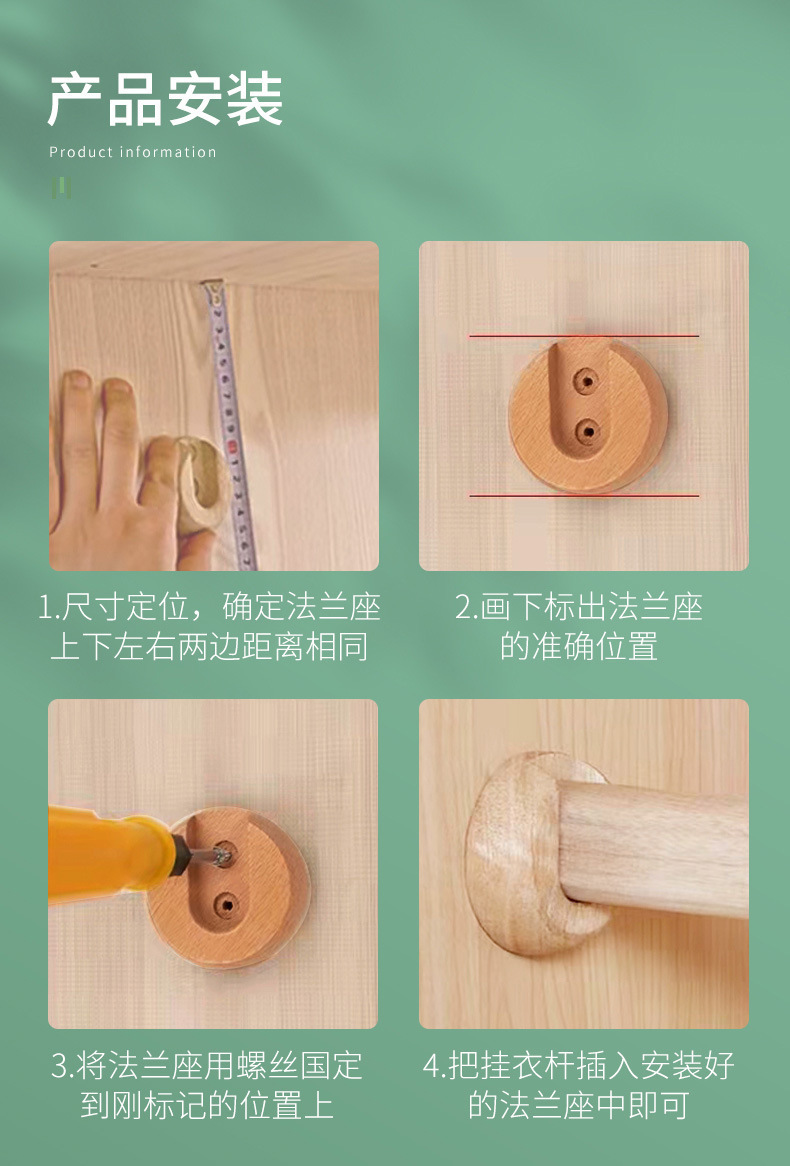 实木衣橱内衣服挂杆子加厚木头法兰晾衣杆衣通横杆衣柜榉木挂衣杆