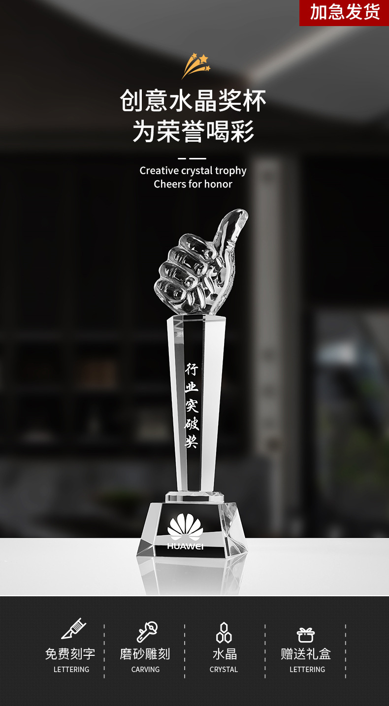 クリスタルトロフィー親指創意試合栄誉記念品会社学校試合彫刻金属メーカー卸売り
