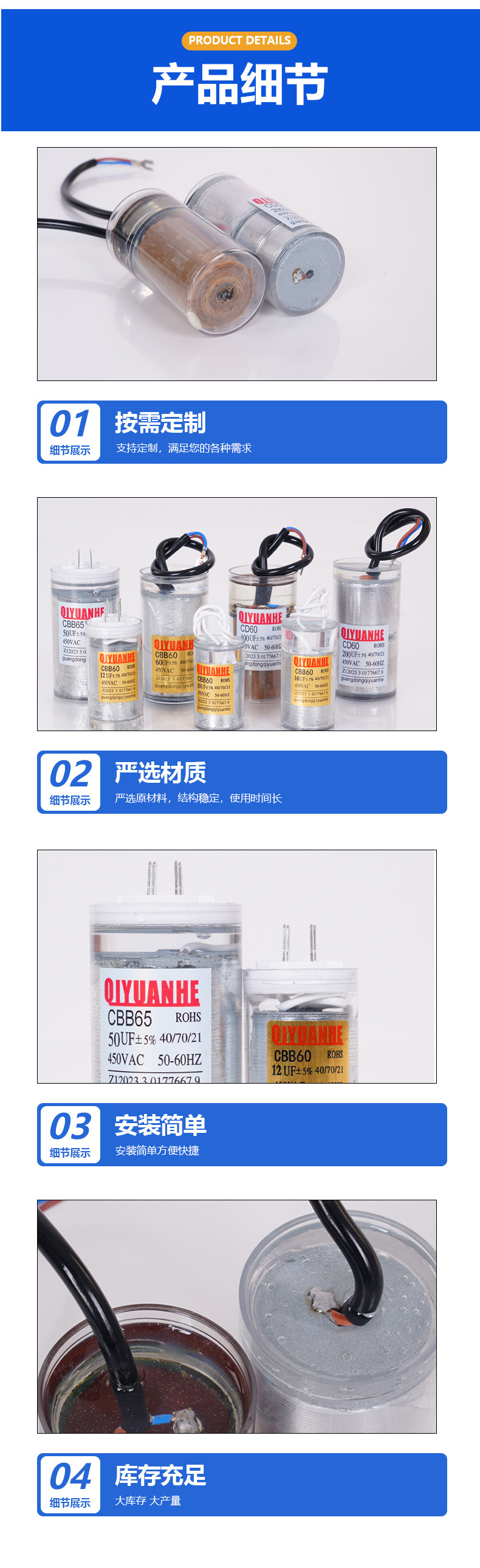 メーカー卸売 CBB60 エポキシ樹脂封止型ポンプモーター コンデンサ スターターモーター コンデンサ 電源