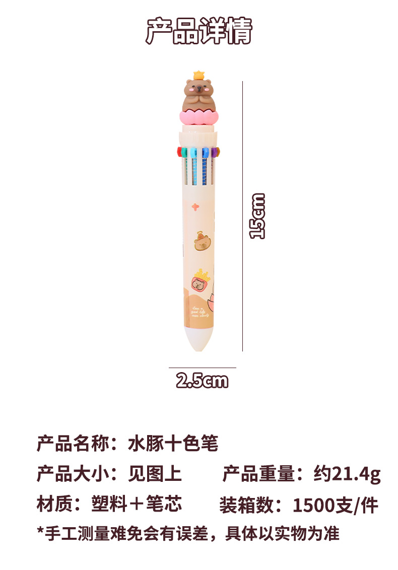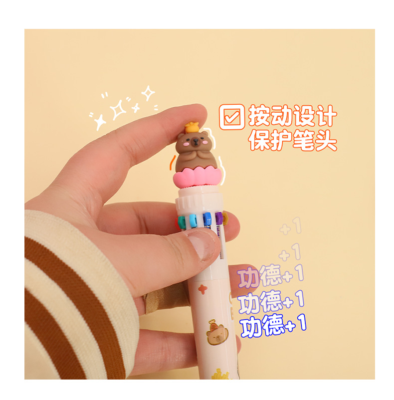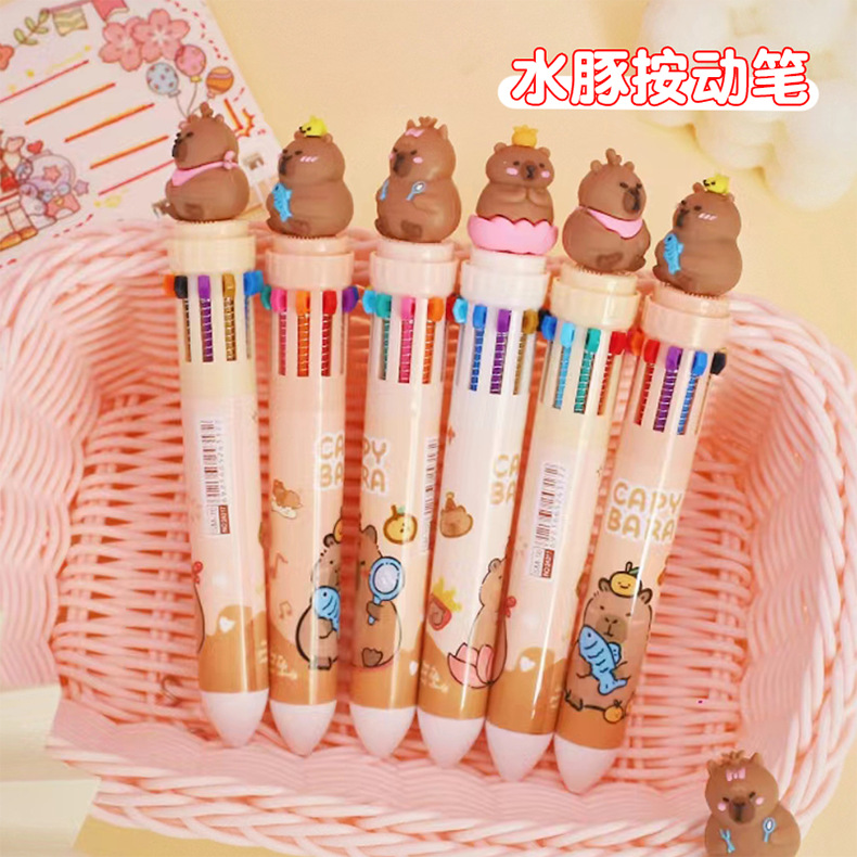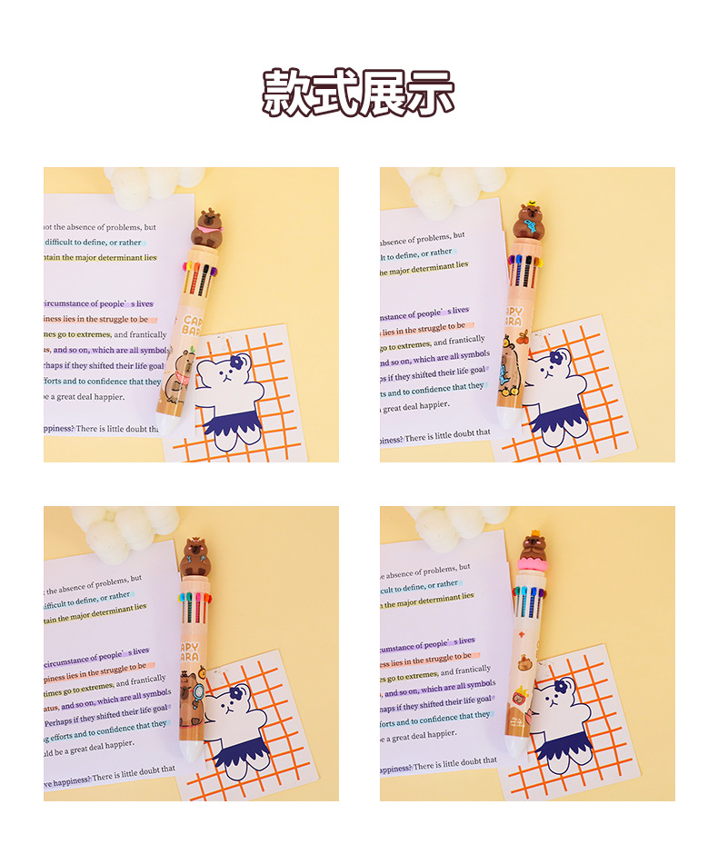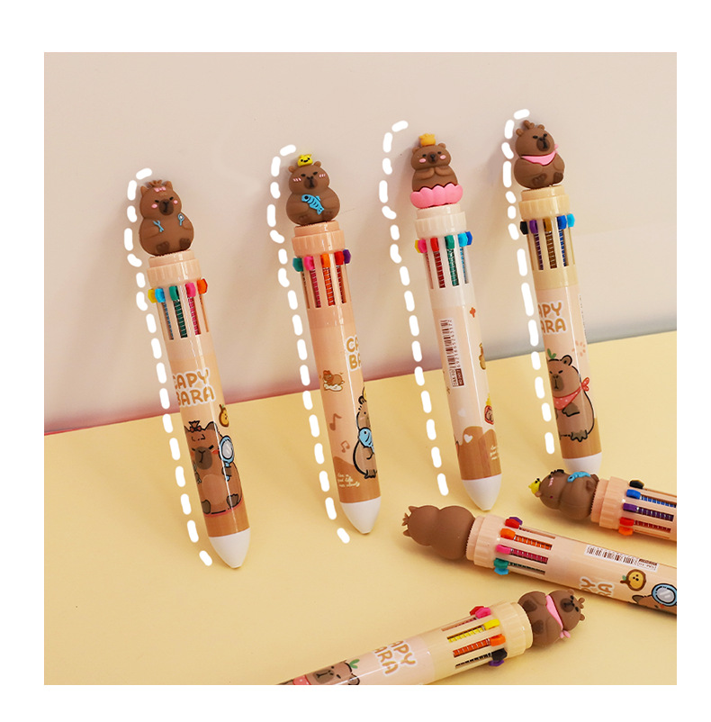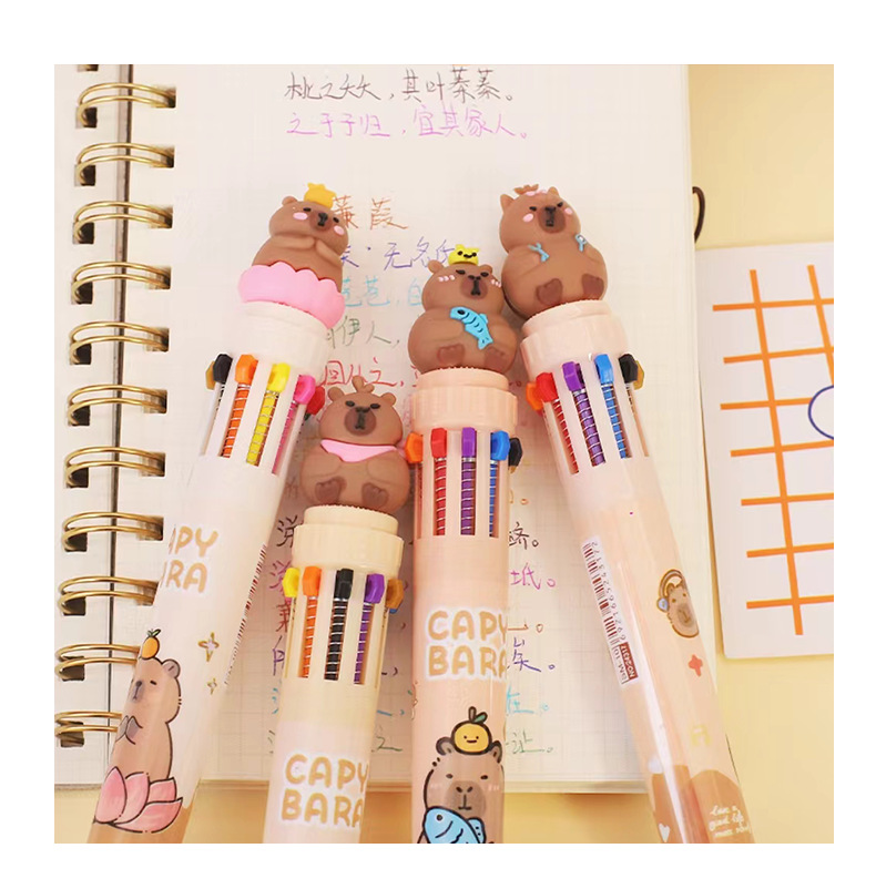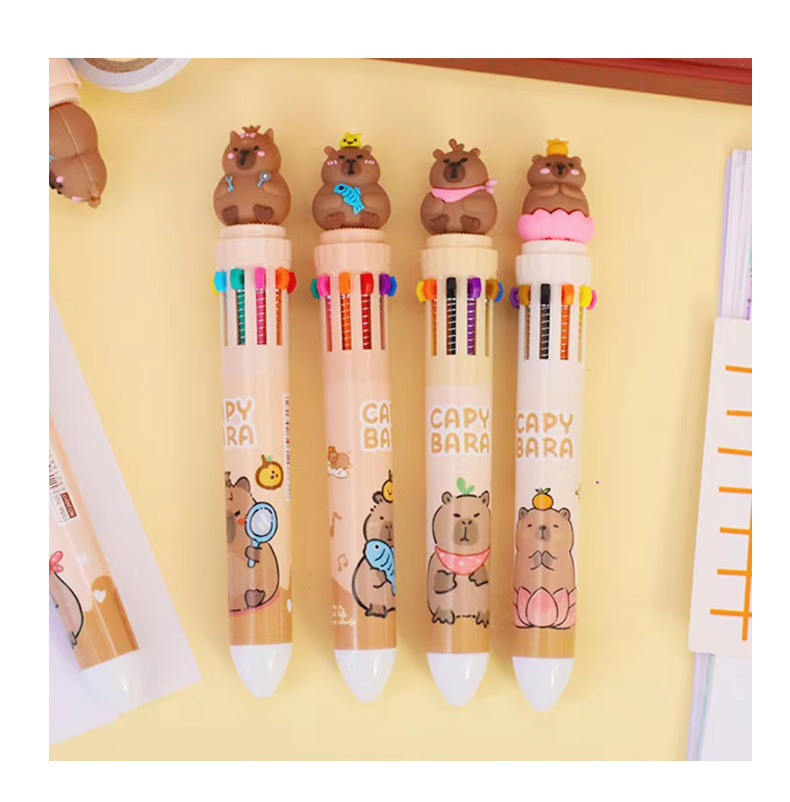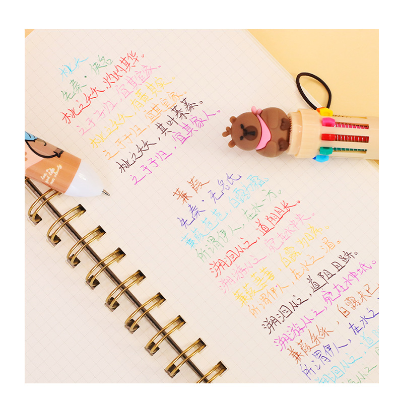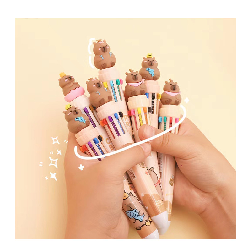 カピバラ十色ボールペン卸売小学生手帳用カラーゲルペン多色ペン中学生ギフトペンホルダー