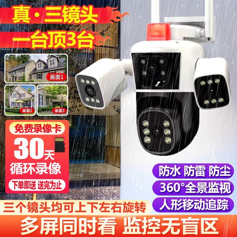 三レンズカメラ家庭用遠隔携帯電話無線接続レス室内wifi超清屋外スマートモニター