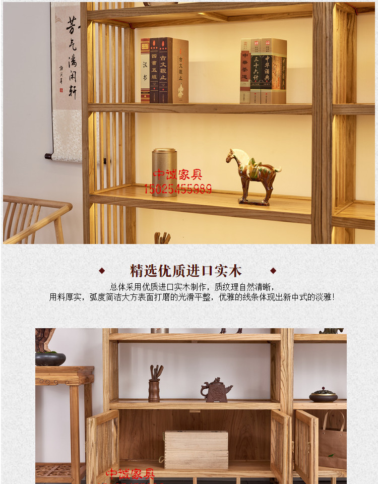 新中式オフィスファイルキャビネット、無垢材オフィスデスク、茶葉収納キャビネット、禅風ディスプレイキャビネット、古美術品陳列棚