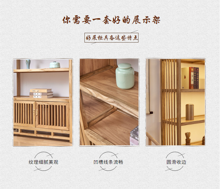 老楡木茶葉棚物置棚実木展示棚茶具置物禅意新中国式収納サイドキャビネット