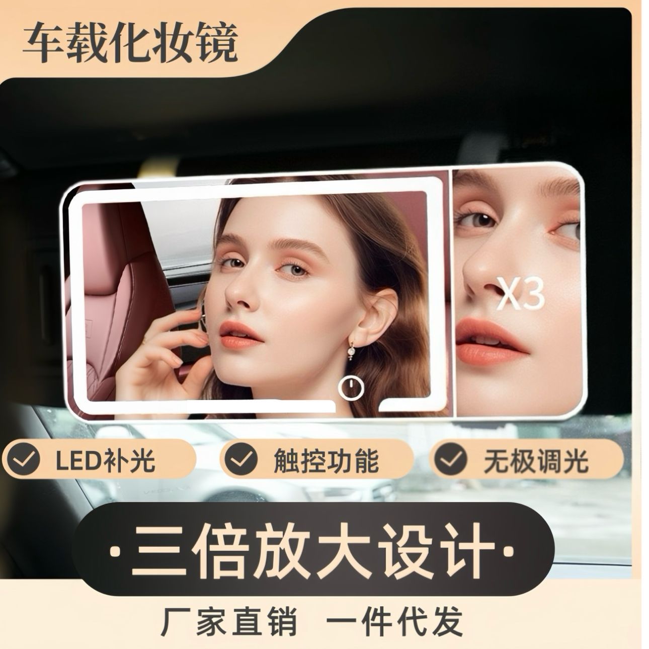 产品名称:车载补光灯镜(三色光&无极调光&四周灯条)