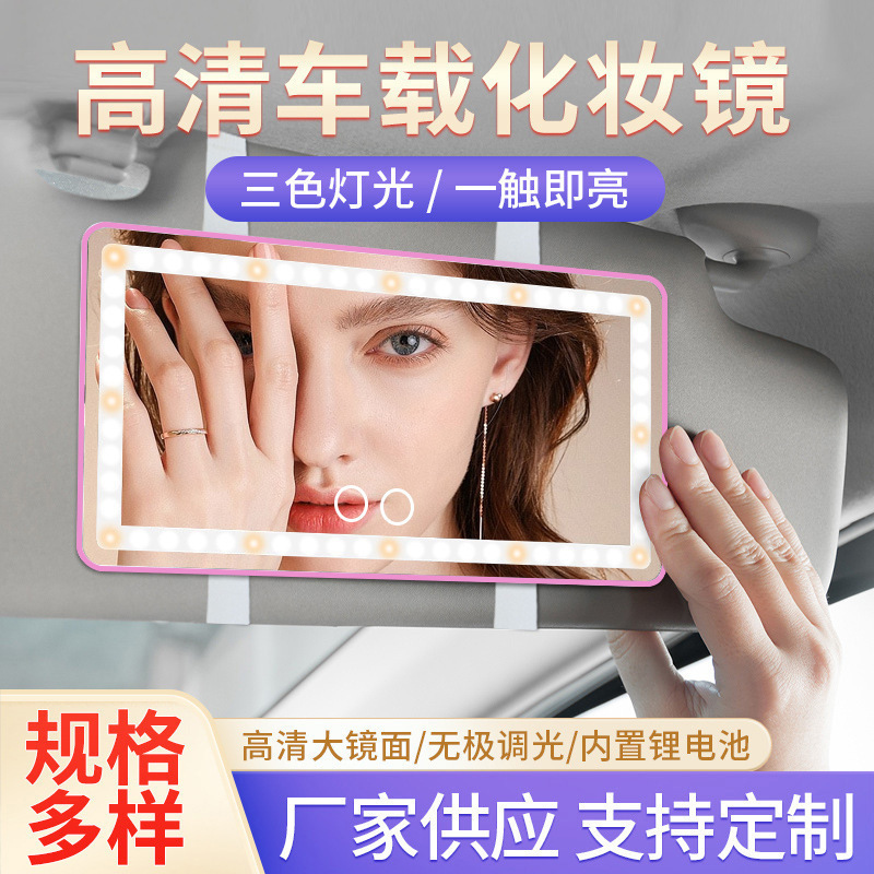 汽车遮阳板镜子带led灯补光补妆车内补妆镜充电款led车载化妆镜