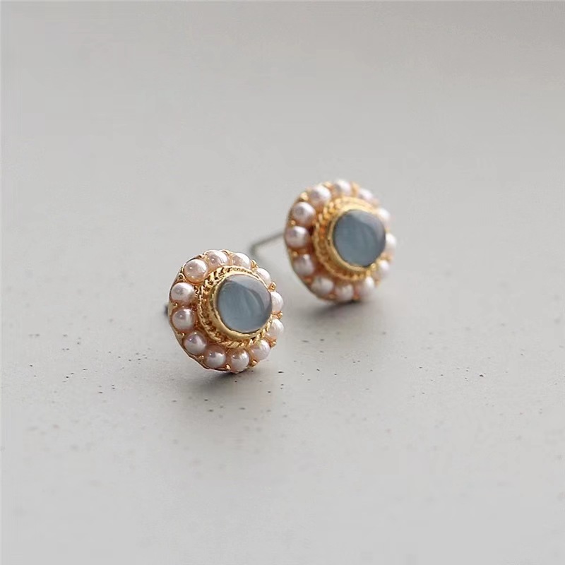 レトロなシンプルな青いピアスのシンプルな真珠の超仙の小さい仙女の気質の優雅で端正な耳の針の耳は蚊の香の皿を挟みます。