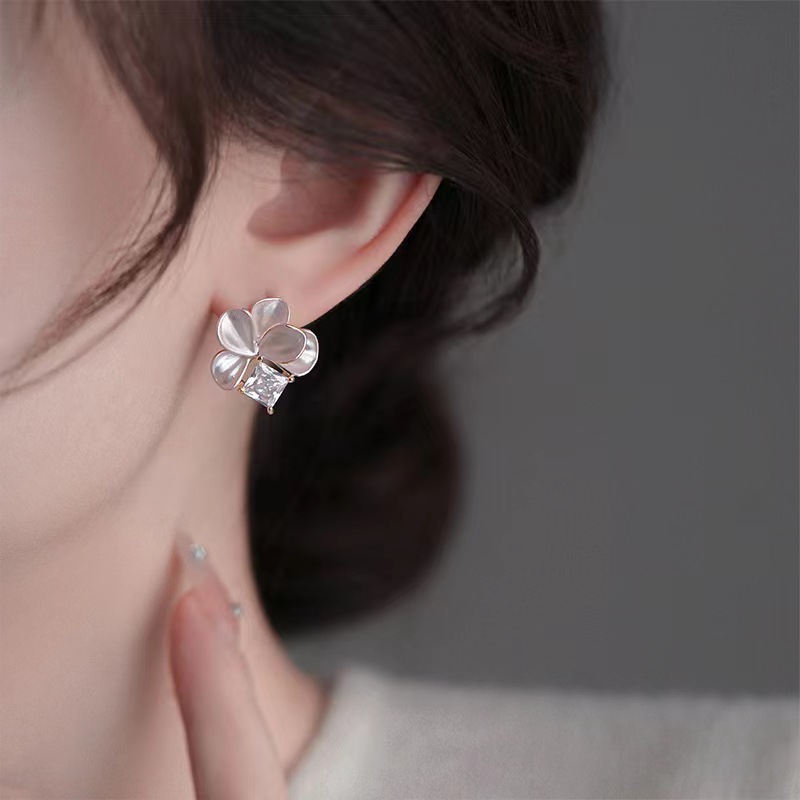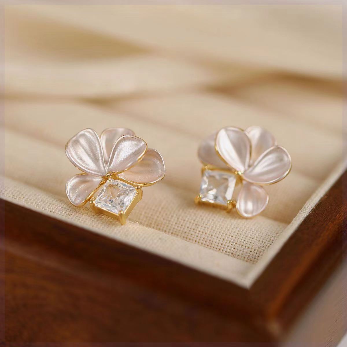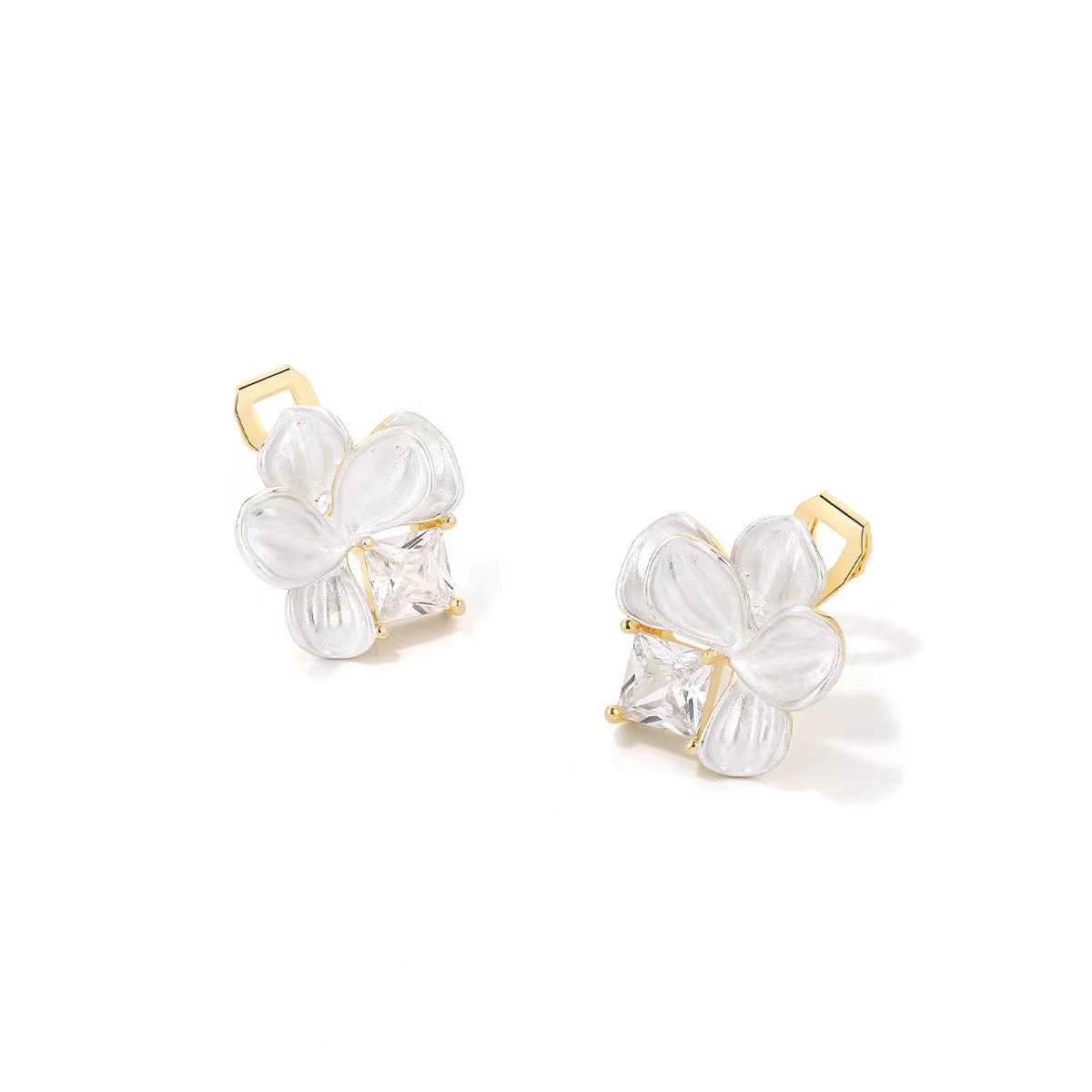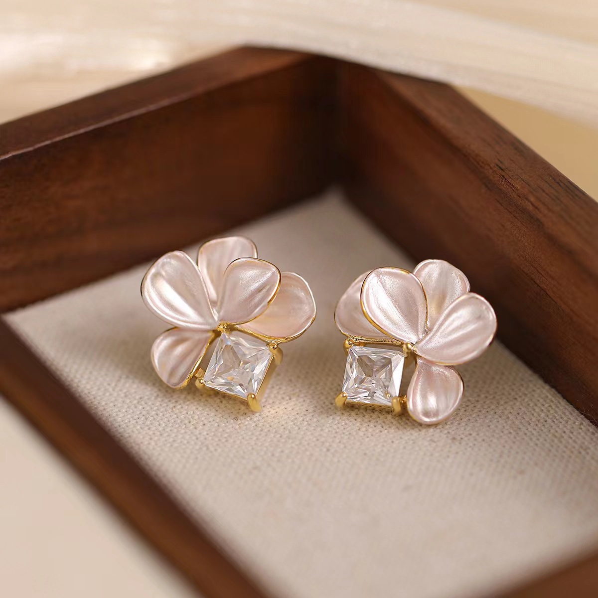 S925銀針レトロジルコン花イヤリングピアス女性大衆デザイン森系花びら耳飾り耳穴なし耳クリップ