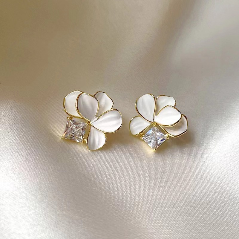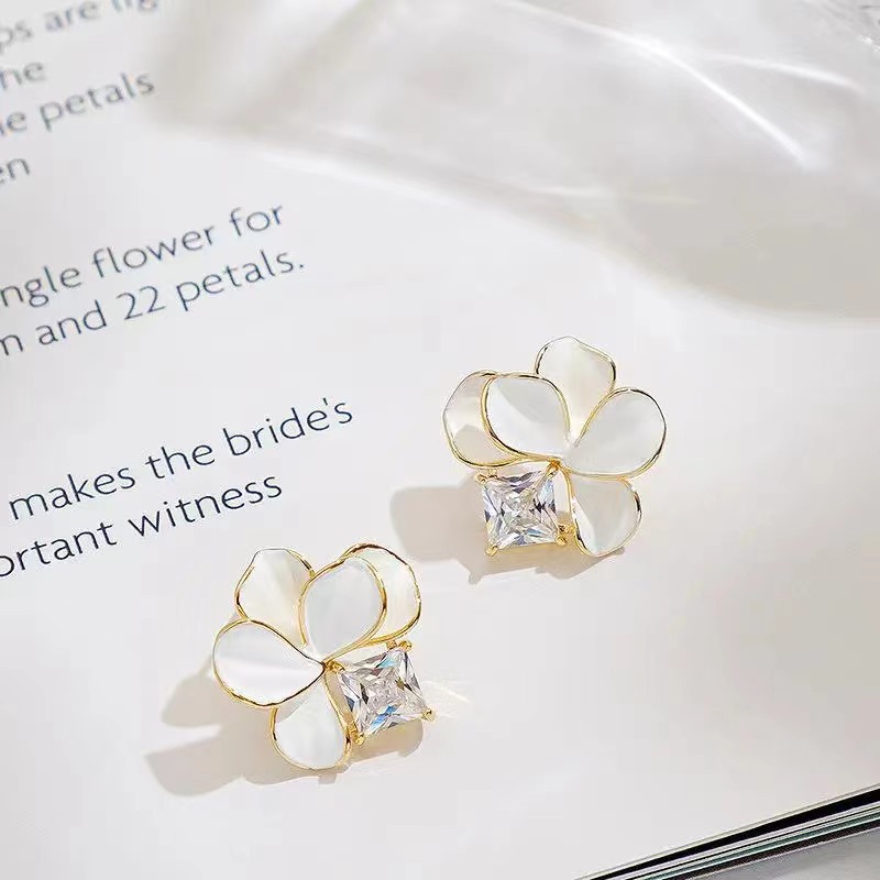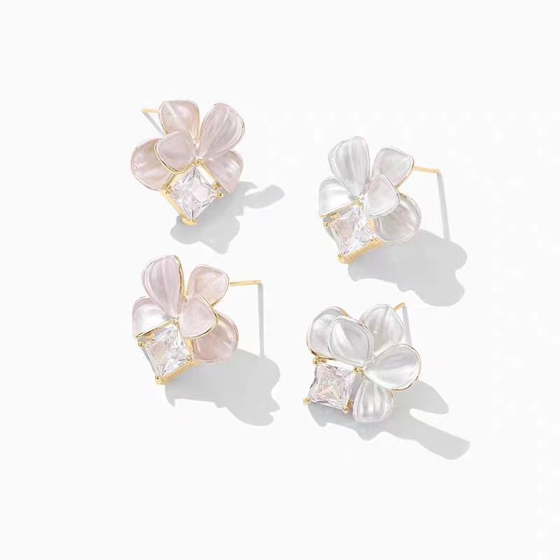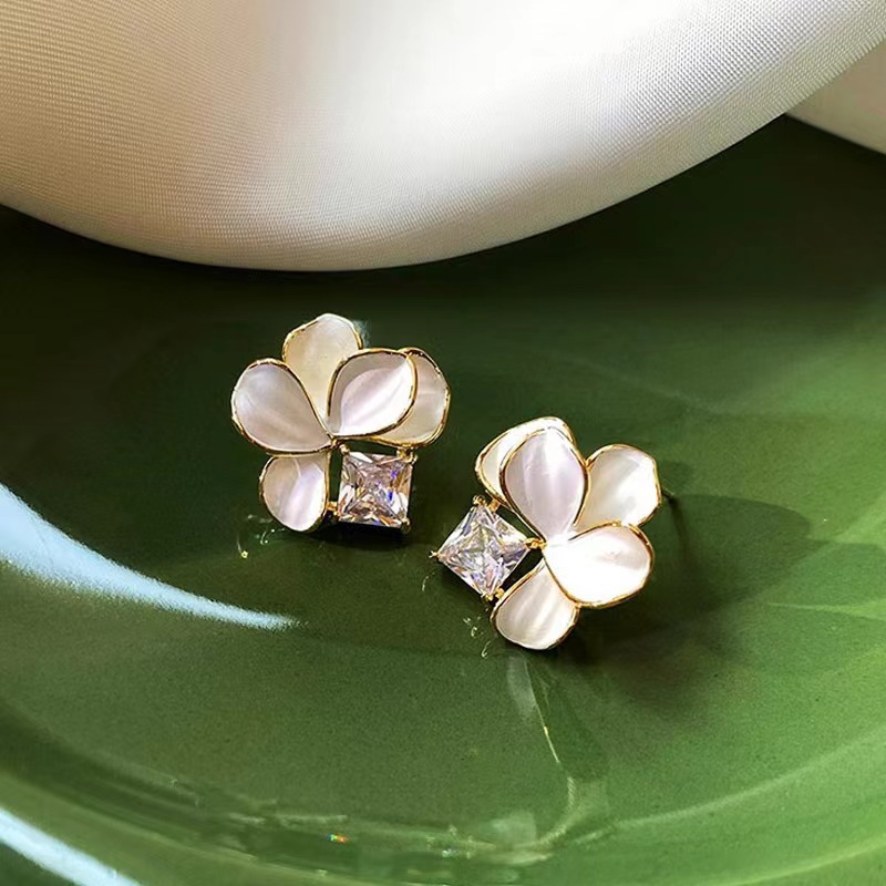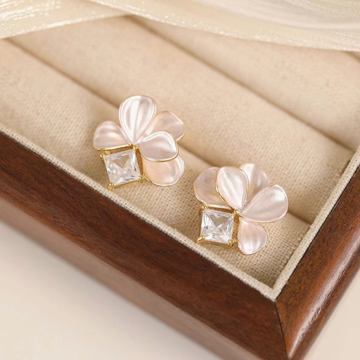 S925銀針レトロジルコン花イヤリングピアス女性大衆デザイン森系花びら耳飾り耳穴なし耳クリップ
