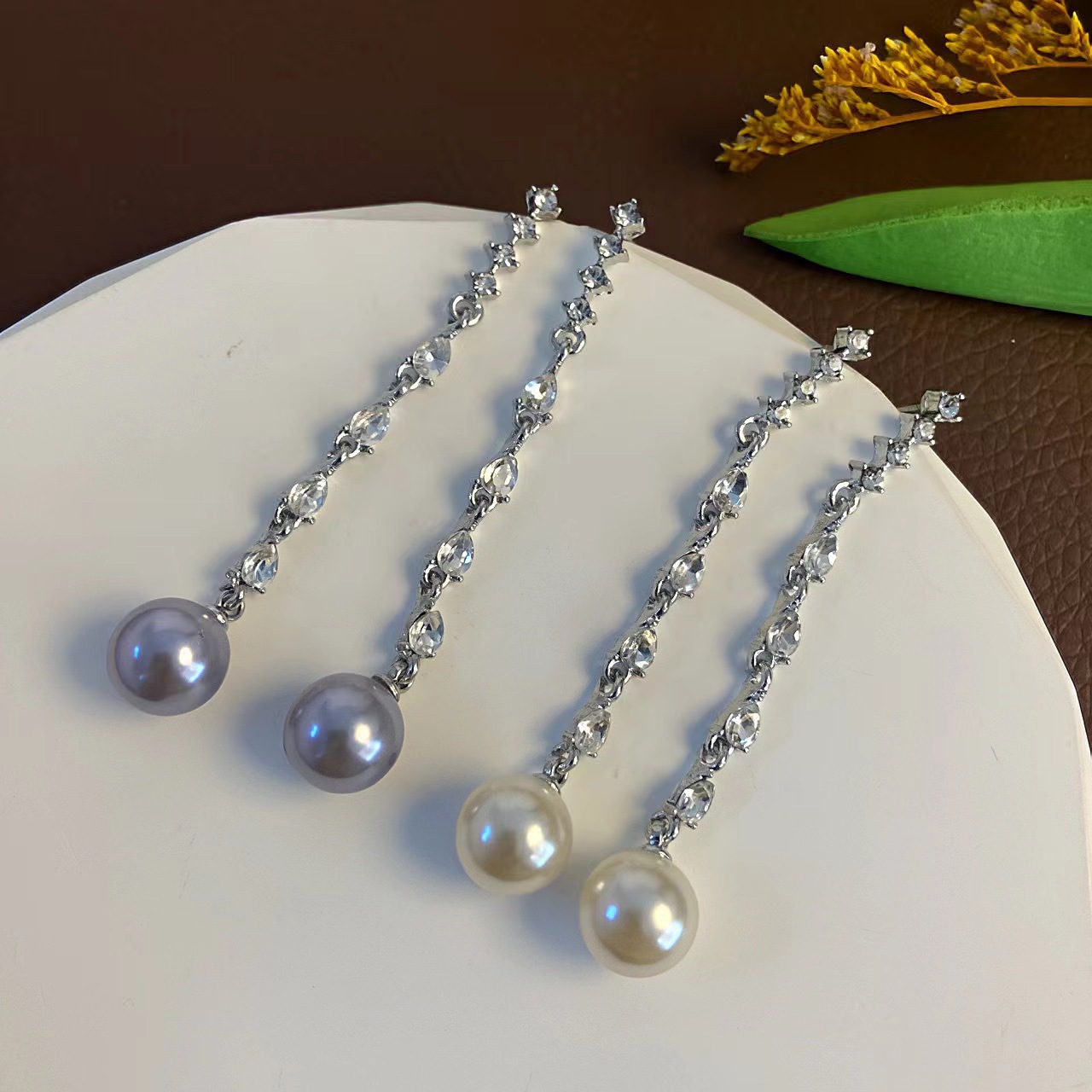 新型のシンプルなロングタイプのフリンジパールのペンダントピアスの雰囲気に合わせて、大衆の高級デザインが洗練されています。