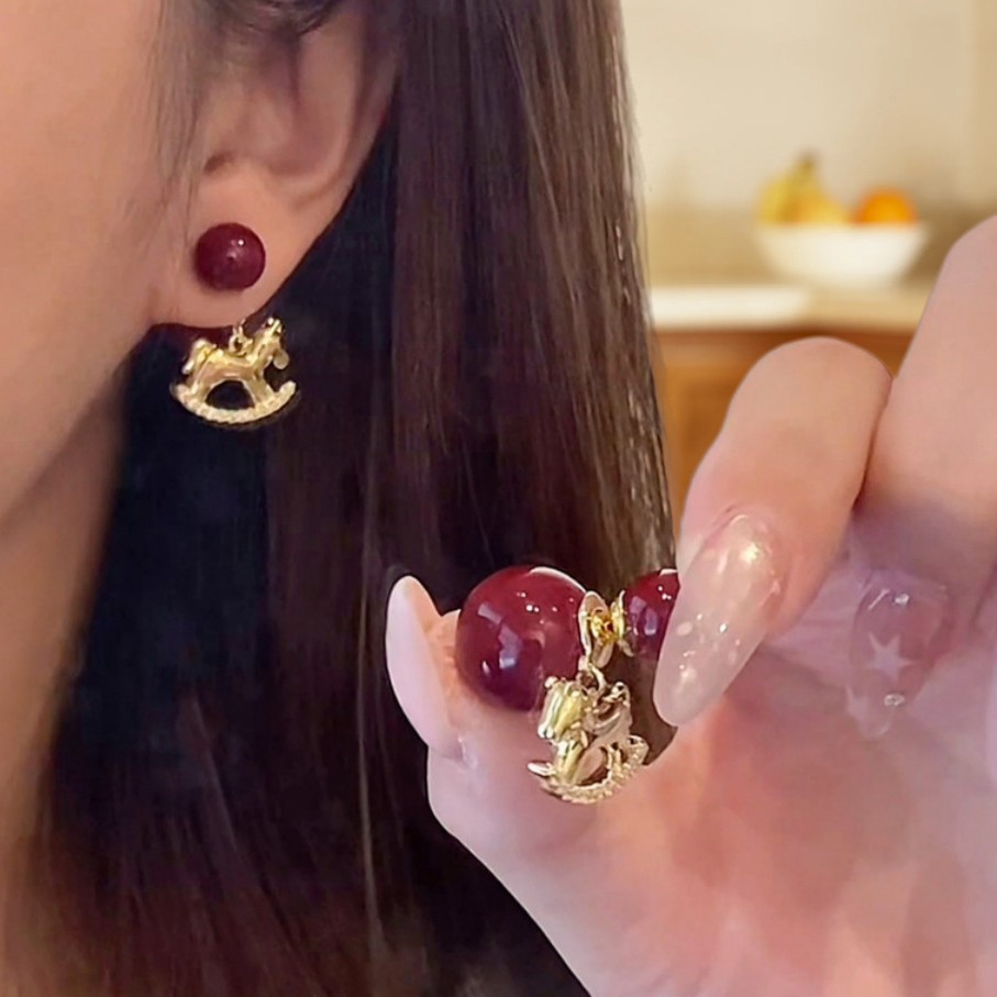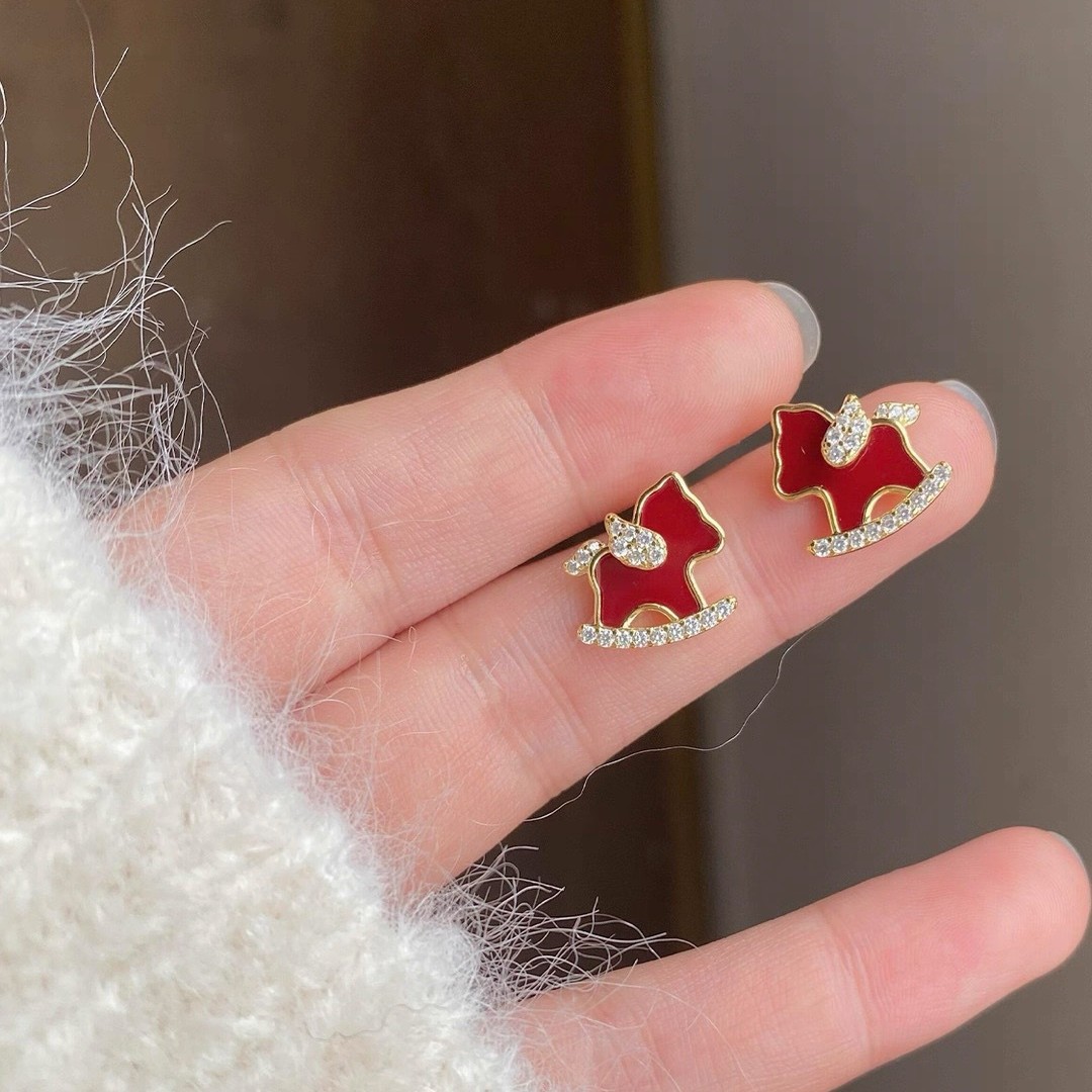 新年爆款红色喜庆小马耳钉本命年马到成功红色耳饰优雅高级感耳钉