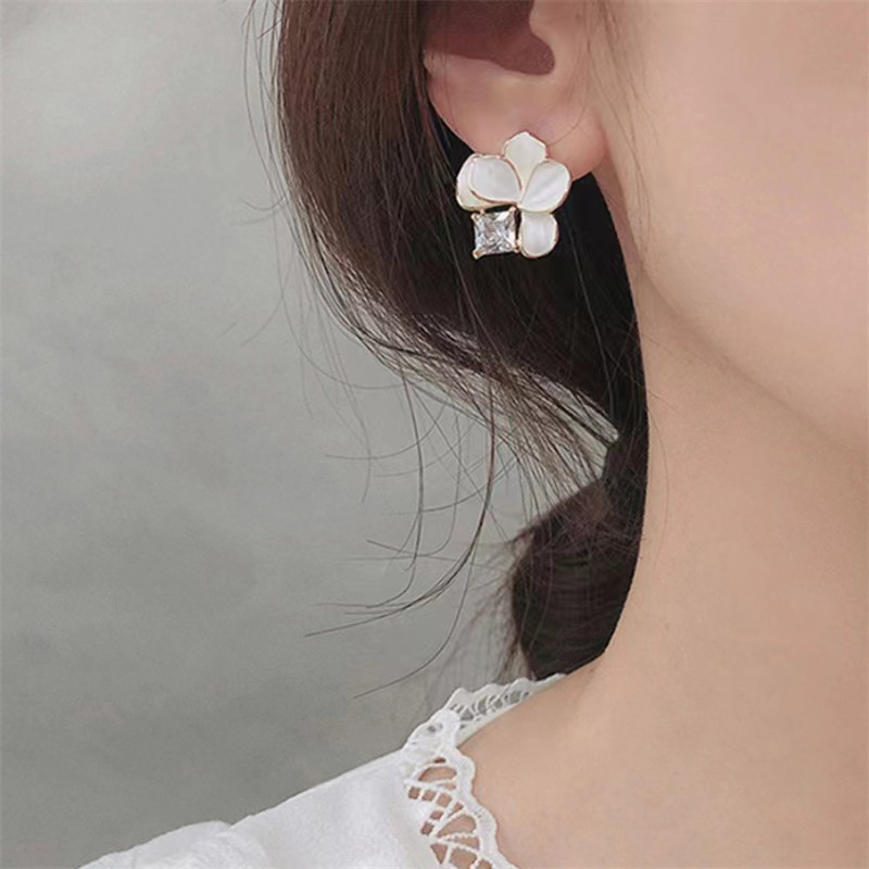 フランスの軽豪華山茶花人魚姫真珠ピアス超仙気質名媛感デザイン洗練されたファッションイヤリング