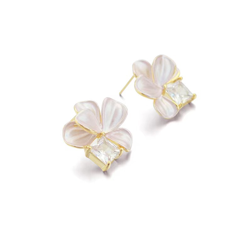 ピンクの花のイヤリング三弁の花の気質のグラデーションの粉の気質の粉の結晶石の花のピアスの女性の甘いイヤリングのイヤリングのイヤリング