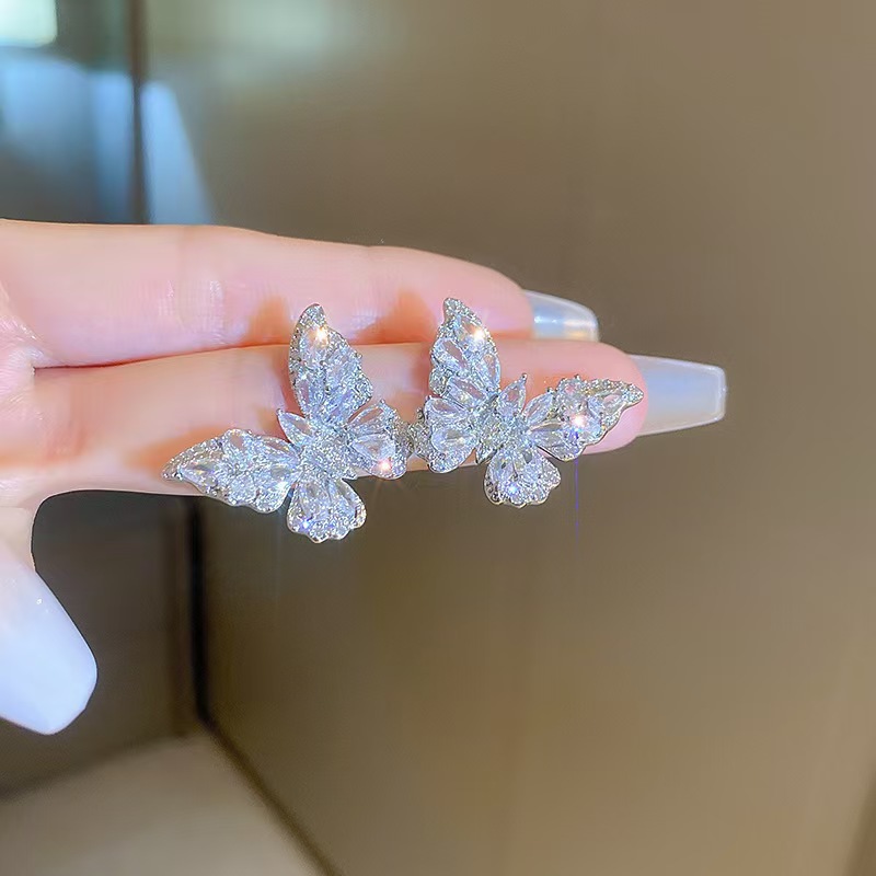新商品の高級感がいっぱいです。蝶のピアスにジルコンが入っています。