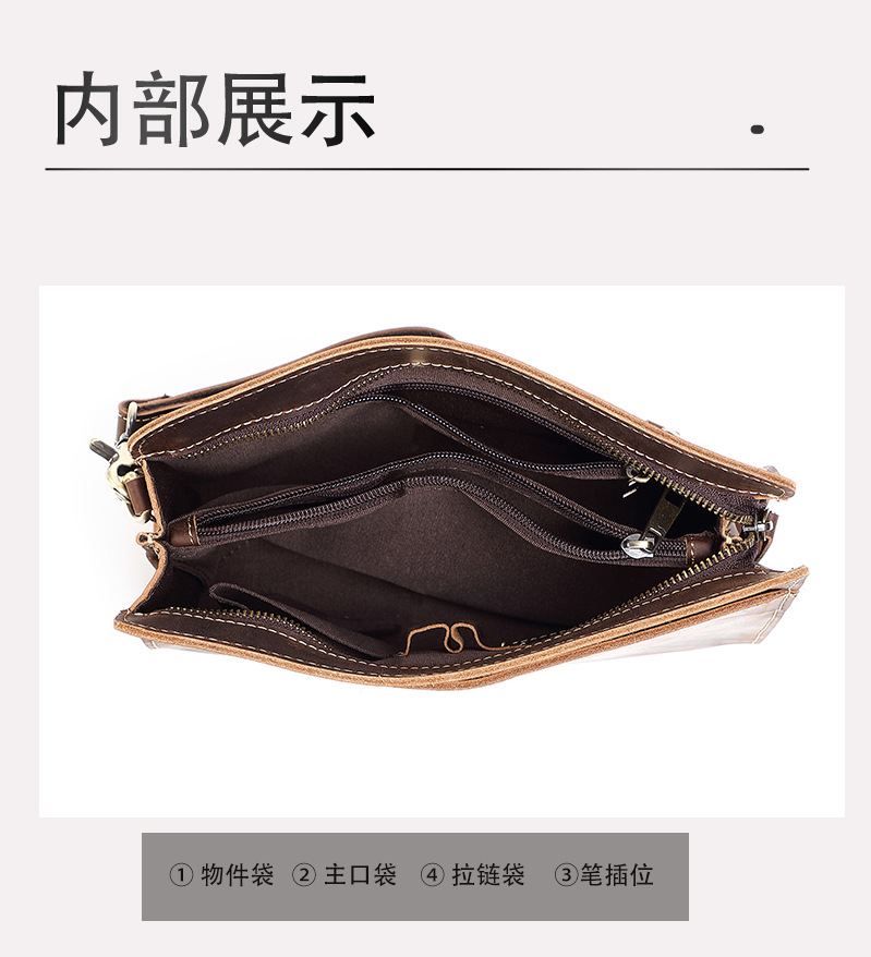 国境を越えてレトロな狂馬皮の男性バッグ牛革の斜め掛けの小さいショルダーバッグの本革の高級感のある男性のファッションバッグの郵便バッグを提供します。