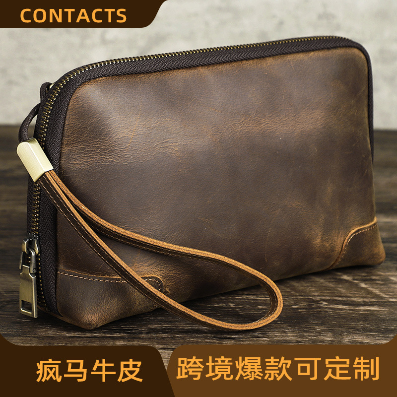 本革ウォッシュバッグ第一層牛革収納袋レトロメンズクラッチバッグ耐摩耗性牛革バッグクロスボーダー供給