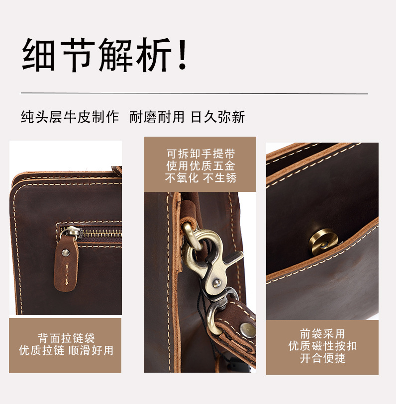 本革メンズビジネスバックパックのトップ層牛革斜め掛けショルダーバッグ本革ブリーフケース狂馬革レトロ郵便バッグ
