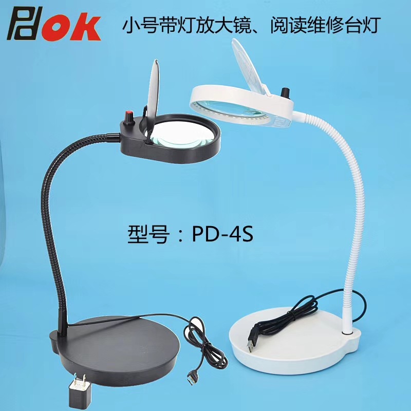 小型デスクトップ拡大鏡ライト付きPD-4S読書修理子母両レンズ10倍20倍作業led電気スタンド