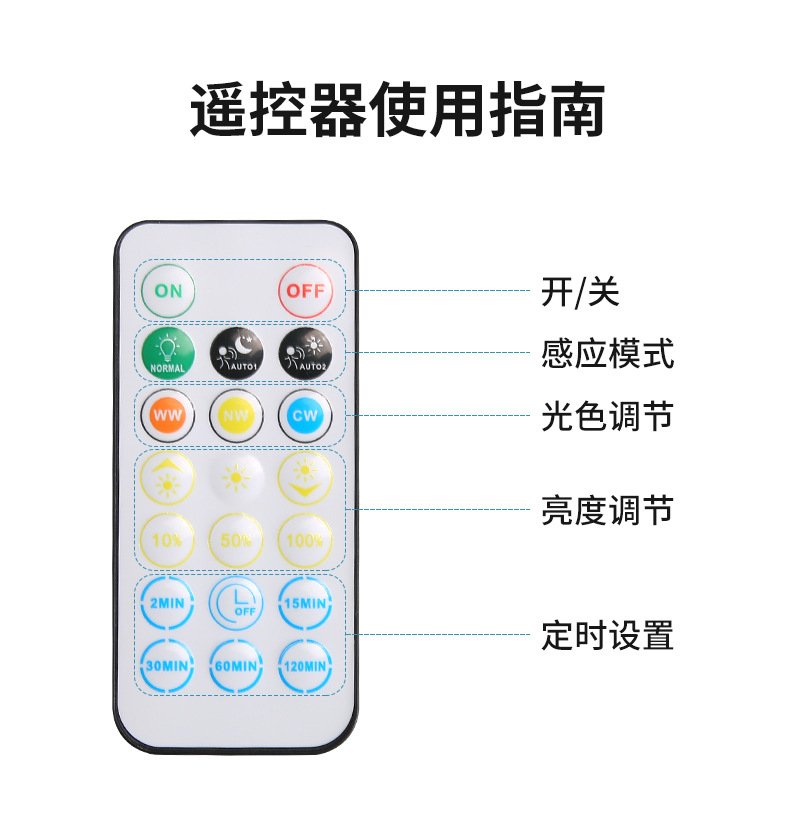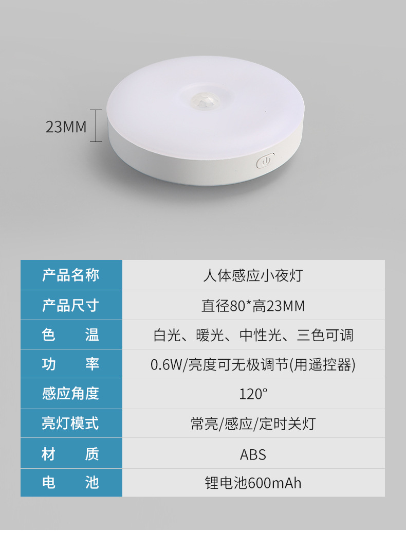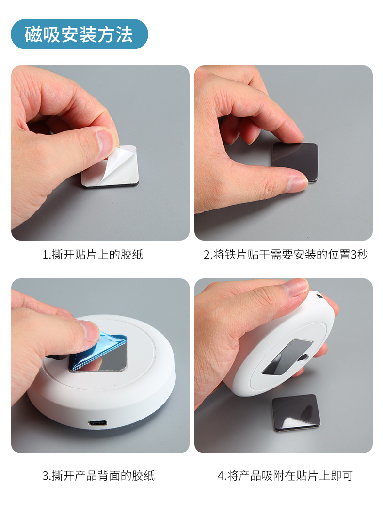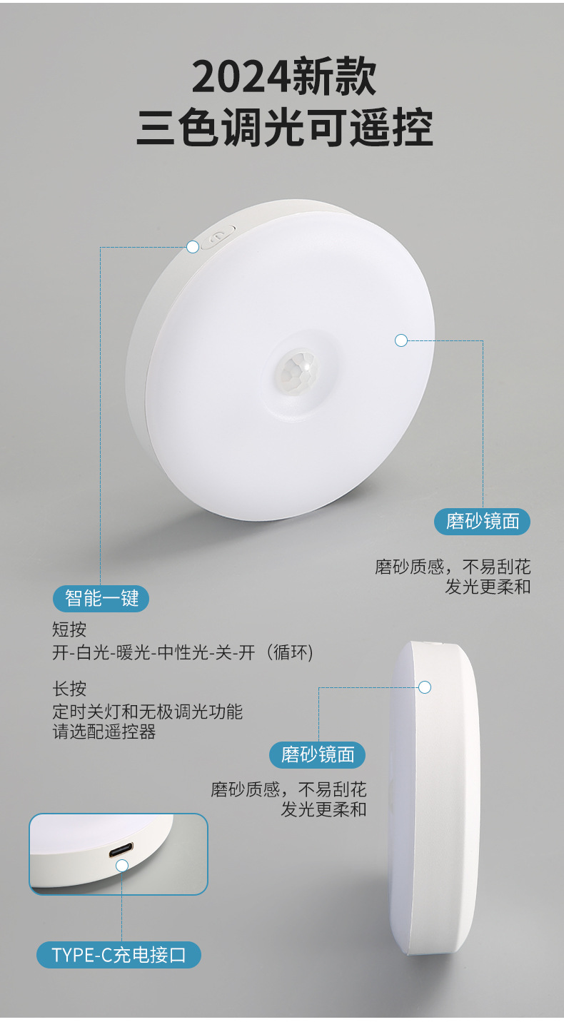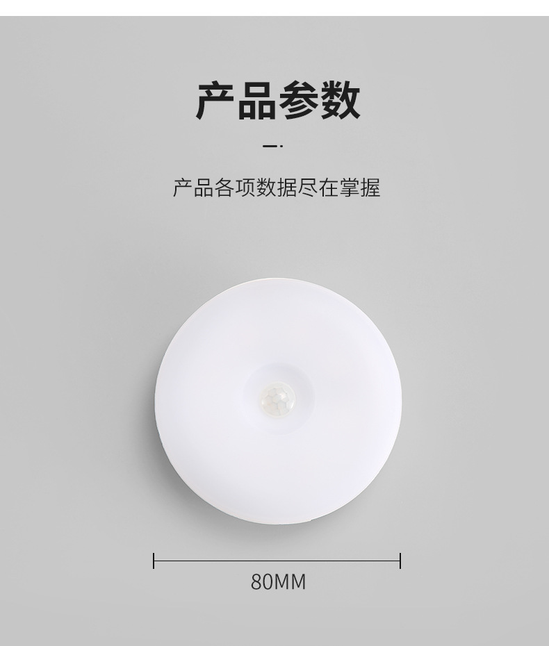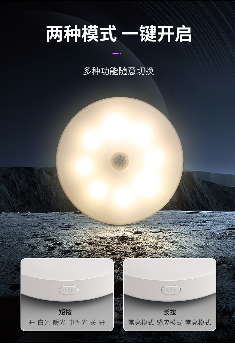 スマートリモコン人体誘導灯Type-c充電口無線磁気吸引キャビネットアイスホッケー円形定時小夜灯