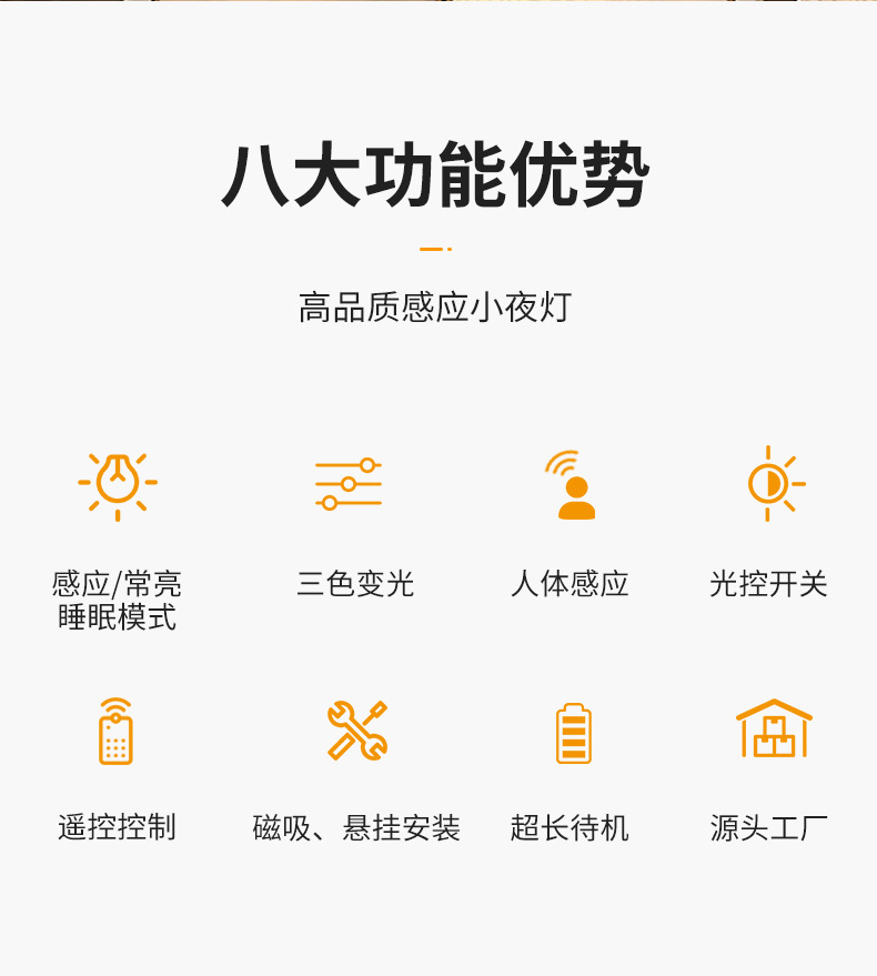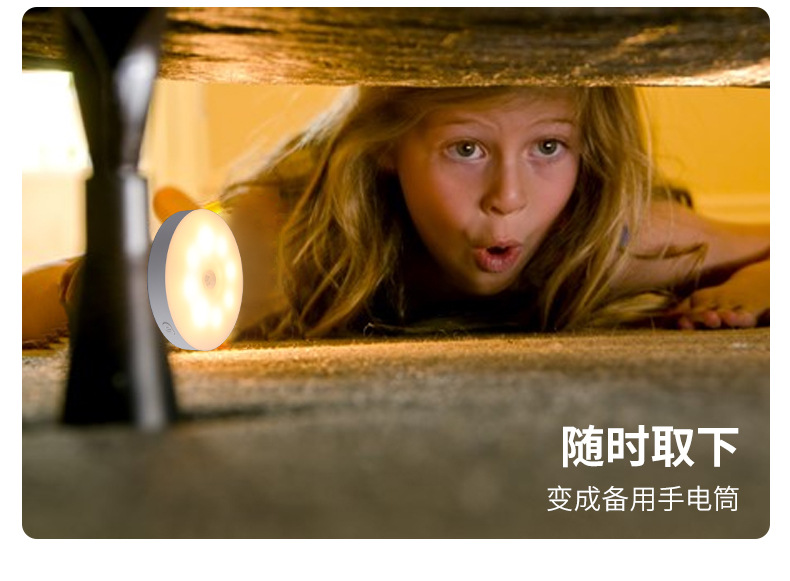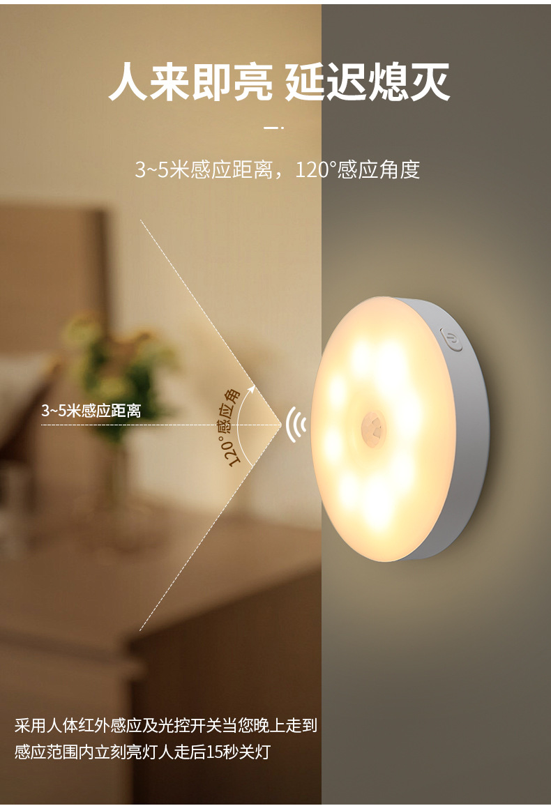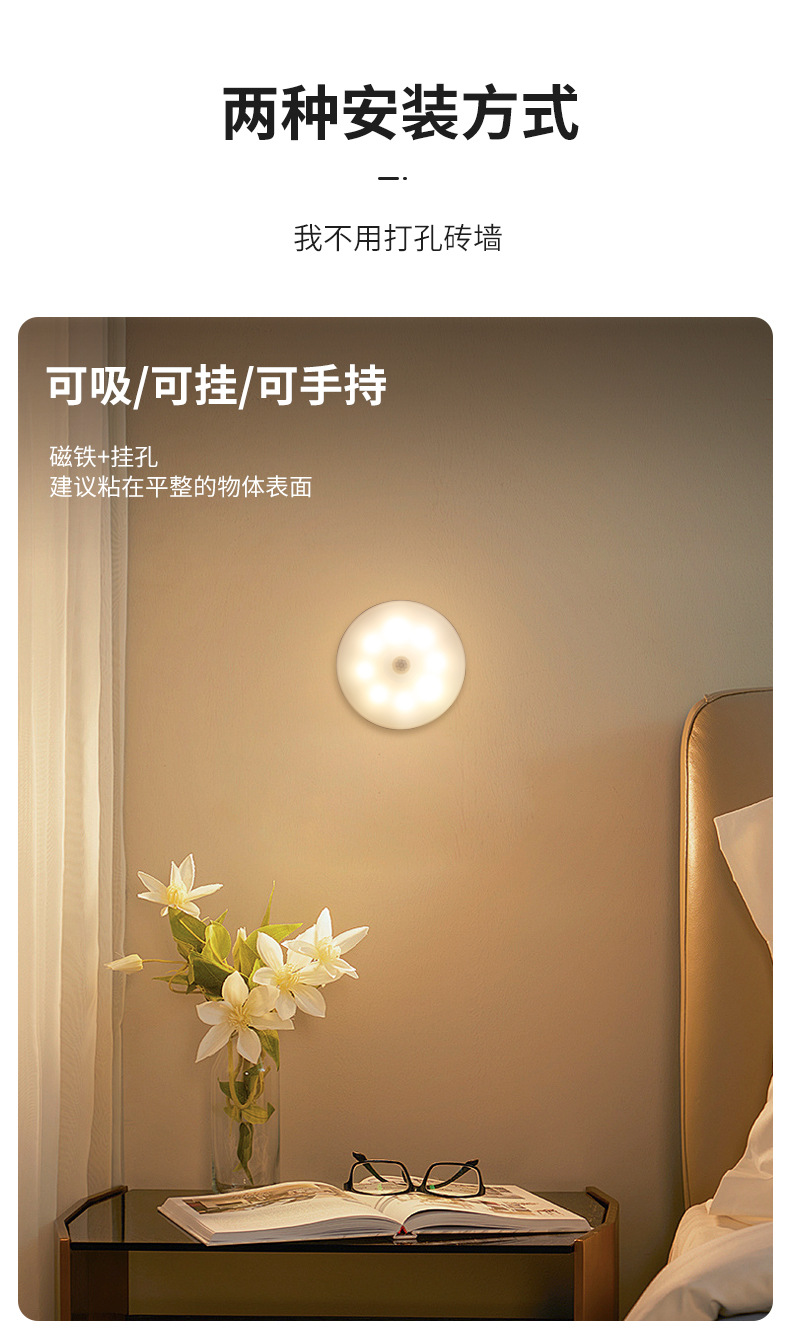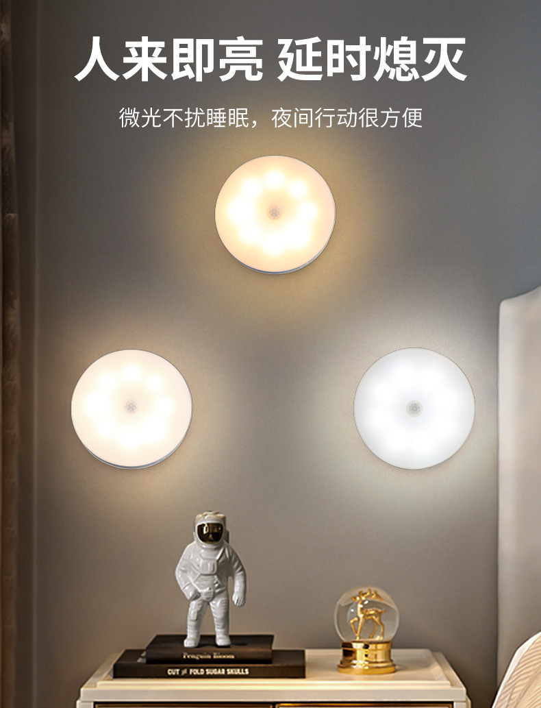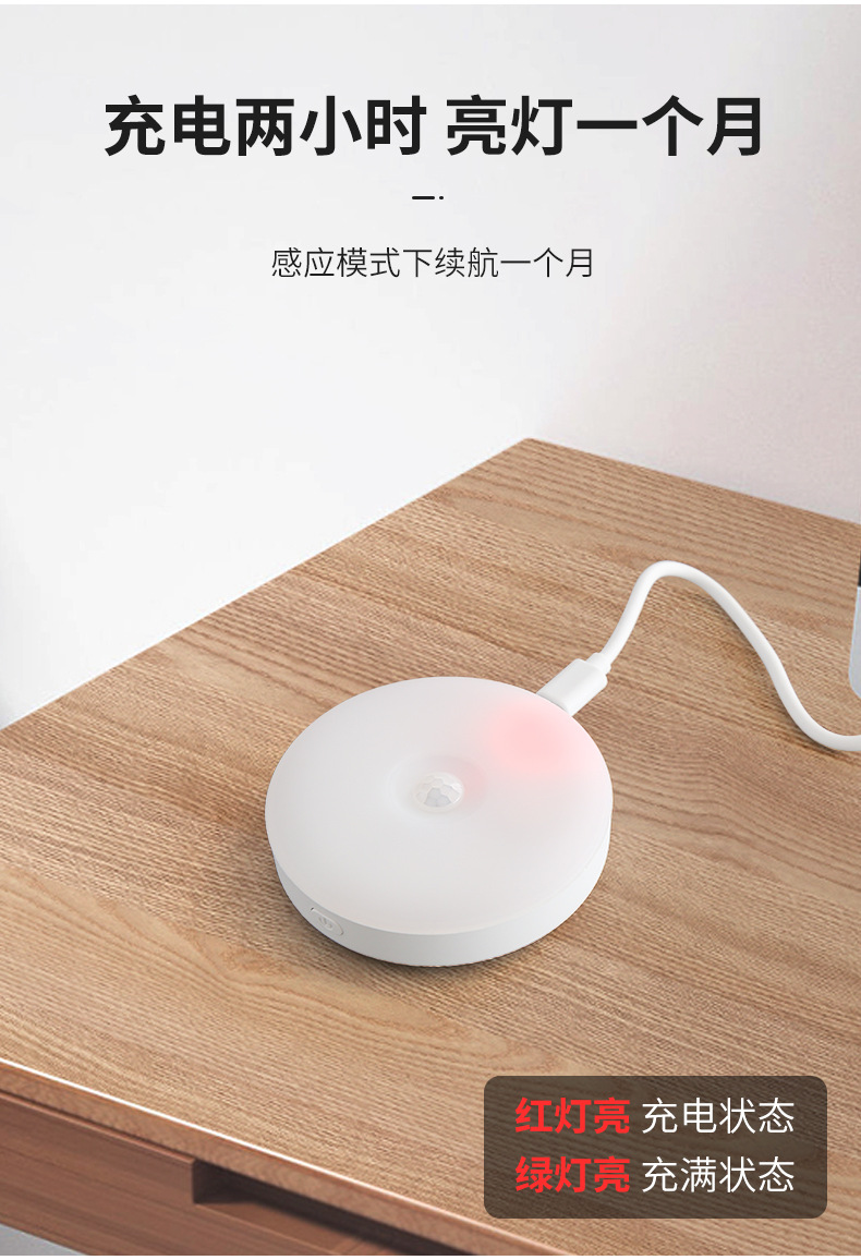LED小夜灯床头卧室橱柜楼梯自动光控磁吸充电迷你智能人体感应灯