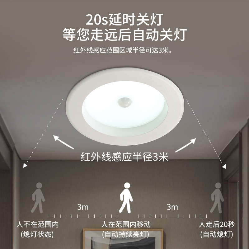 人体感応ダウンライトホテル廊下天井天井バレル穴スポットライト音控赤外レーダー感応ledダウンライト