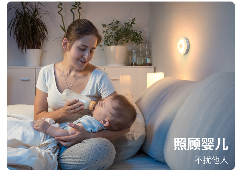 ボタン無誘導ledランプ磁気吸引円形小夜灯寝室ベッドサイド赤ちゃん妊娠ママ授乳寮夜灯