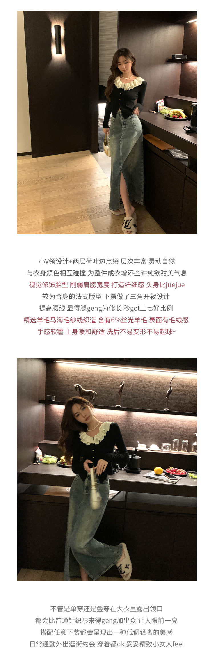纽扣锁骨衫心机设计V领修身弹力显瘦纽扣针织上衣女装毛织衫工厂