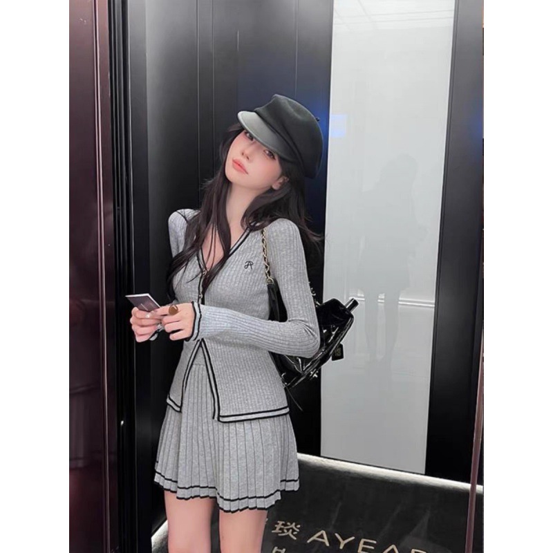秋装搭配一整套小香风针织套装百褶裙子两件套早秋季新款毛织女装